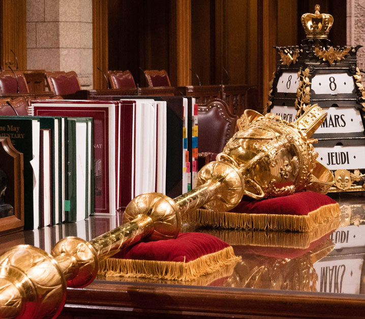 The Senate of Canada curates a world-class collection of more than 6,000 works of art, ceremonial objects and heritage furniture. Many of these items are displayed in the Senate of Canada Building or used in parliamentary functions, such as Senate sittings. The collection’s curated works and artefacts are significant to the material culture of the Senate, celebrate Canadian history, ideas and identities and serve as reminders of Canada’s momentous events, ceremonies and individuals.