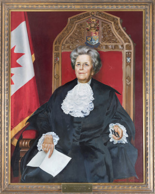 The subject of this portrait, the Honourable Muriel McQueen Fergusson, is notable for her legacy of breaking barriers for women in the Senate. Appointed in 1953, Ms. Fergusson was the first female senator to represent New Brunswick and to serve as Speaker. During her 22 years in the Senate, Ms. Fergusson fought for equal opportunity and pay for Canadian women and helped open the Senate Page Program to young women. She served as Speaker from 1972 to 1974 and retired from the Upper Chamber in 1975.