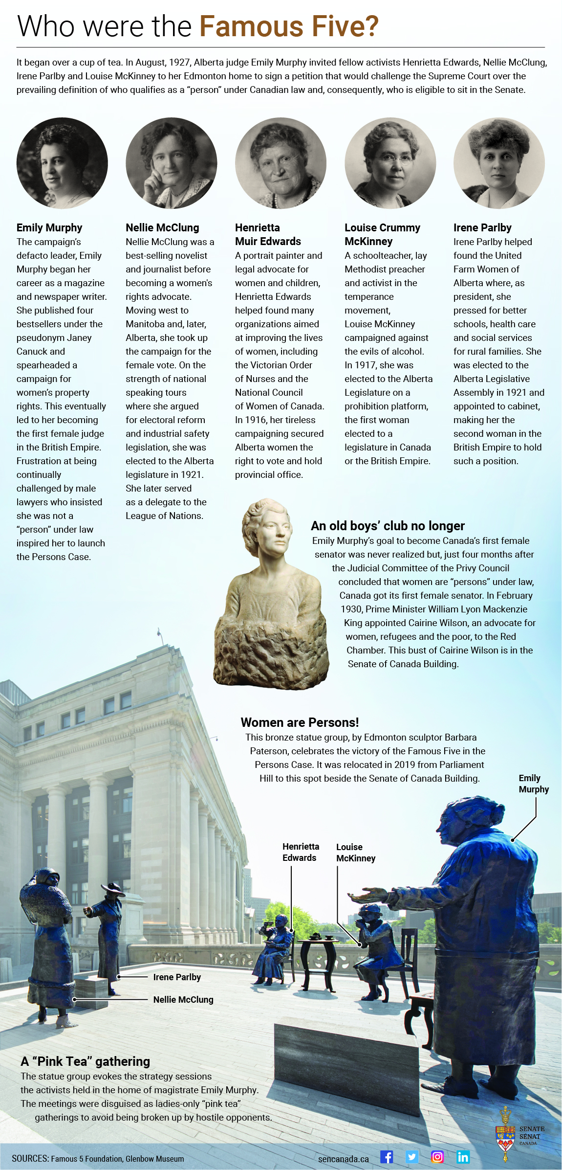Having secured women the vote in Manitoba, Alberta and Saskatchewan, and having helped to open the judiciary and provincial legislatures to women, the Famous Five were already household names before they joined forces in 1927.
