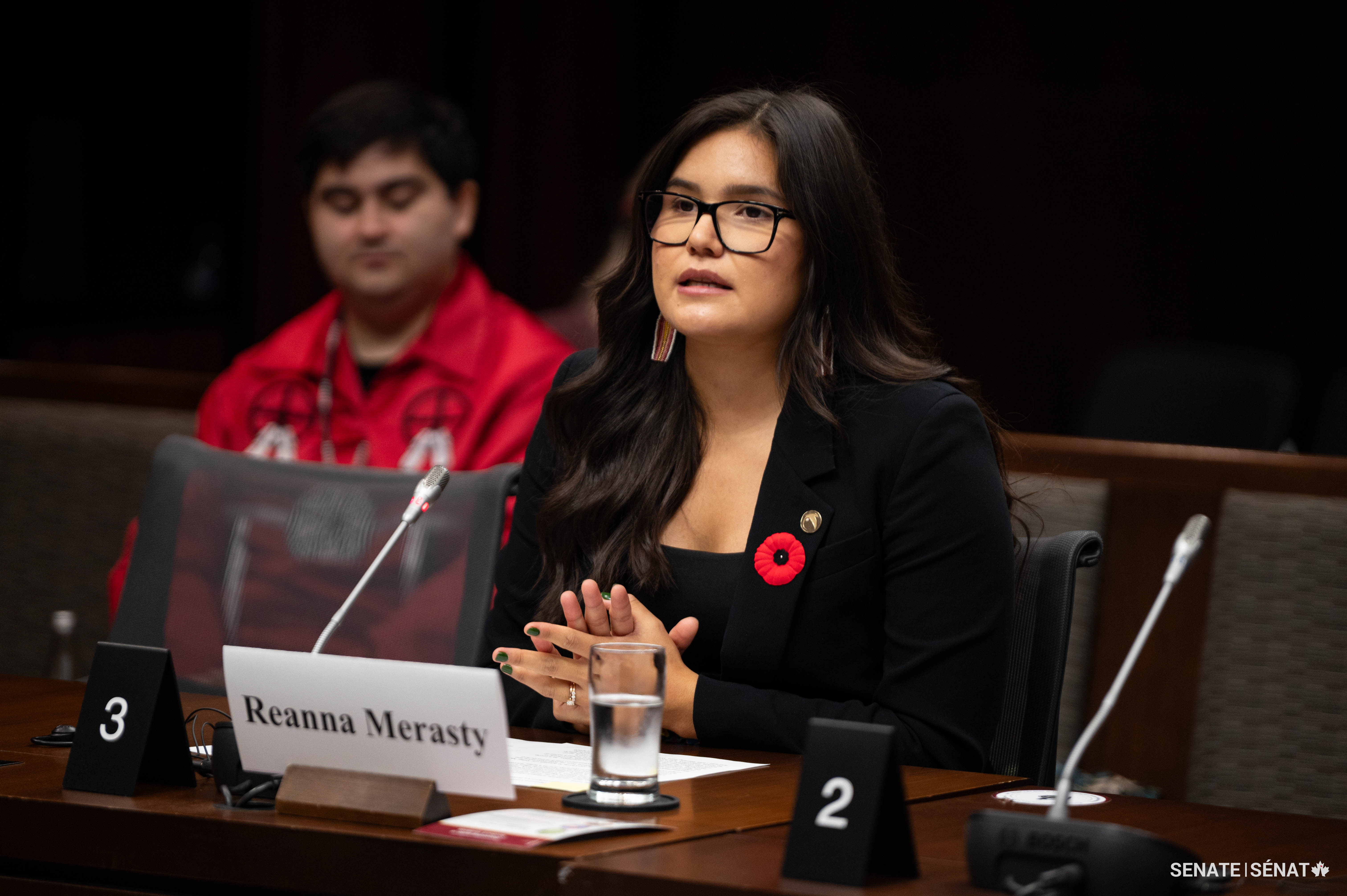 Reanna Merasty (McKay), an architecture intern from Barren Lands First Nation in northern Manitoba, tells the Senate Committee on Indigenous Peoples about her work advocating for more Indigenous representation in her field. Notably, she cofounded the Indigenous Design and Planning Students’ Association at the University of Manitoba.