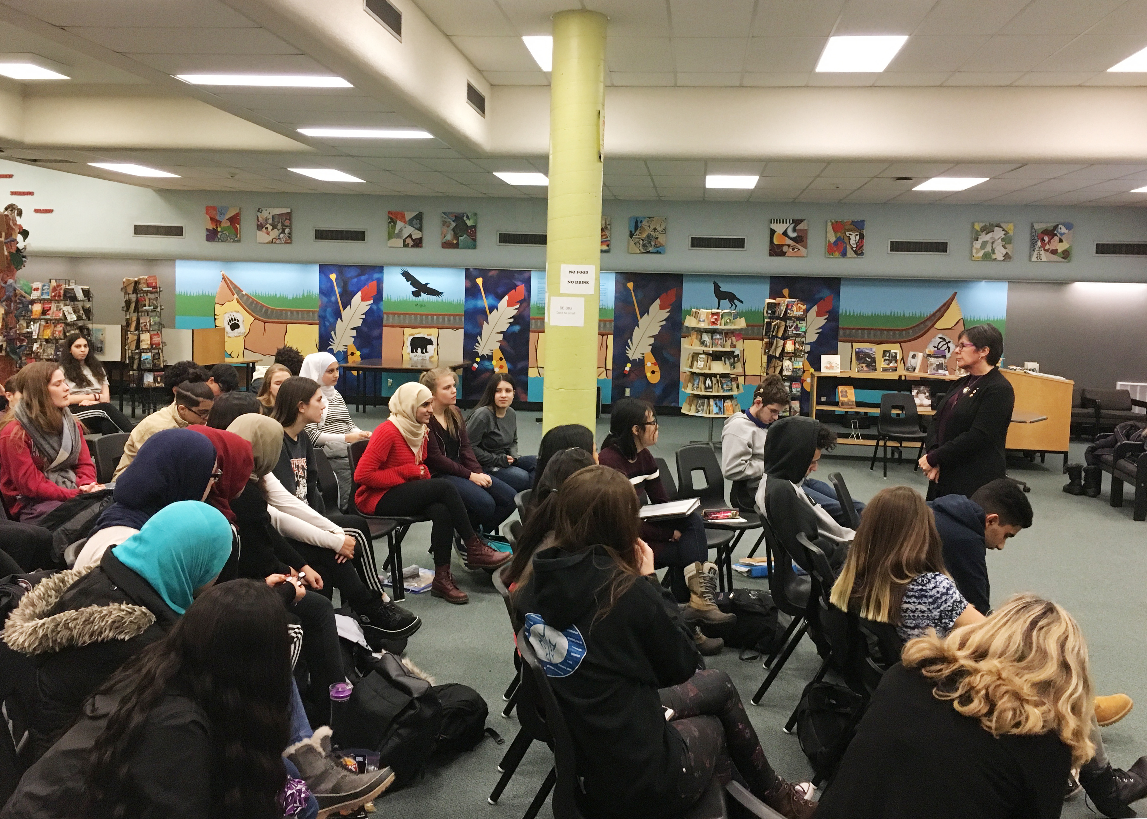 Monday, December 18 — Senator Kim Pate visits a group of grade 12 law students at Hillcrest High School in Ottawa for a SENgage guest talk. She shared her perspective on how to reform the Canadian corrections system, particularly speaking to the case of teenager Ashley Smith, which the students have been studying.