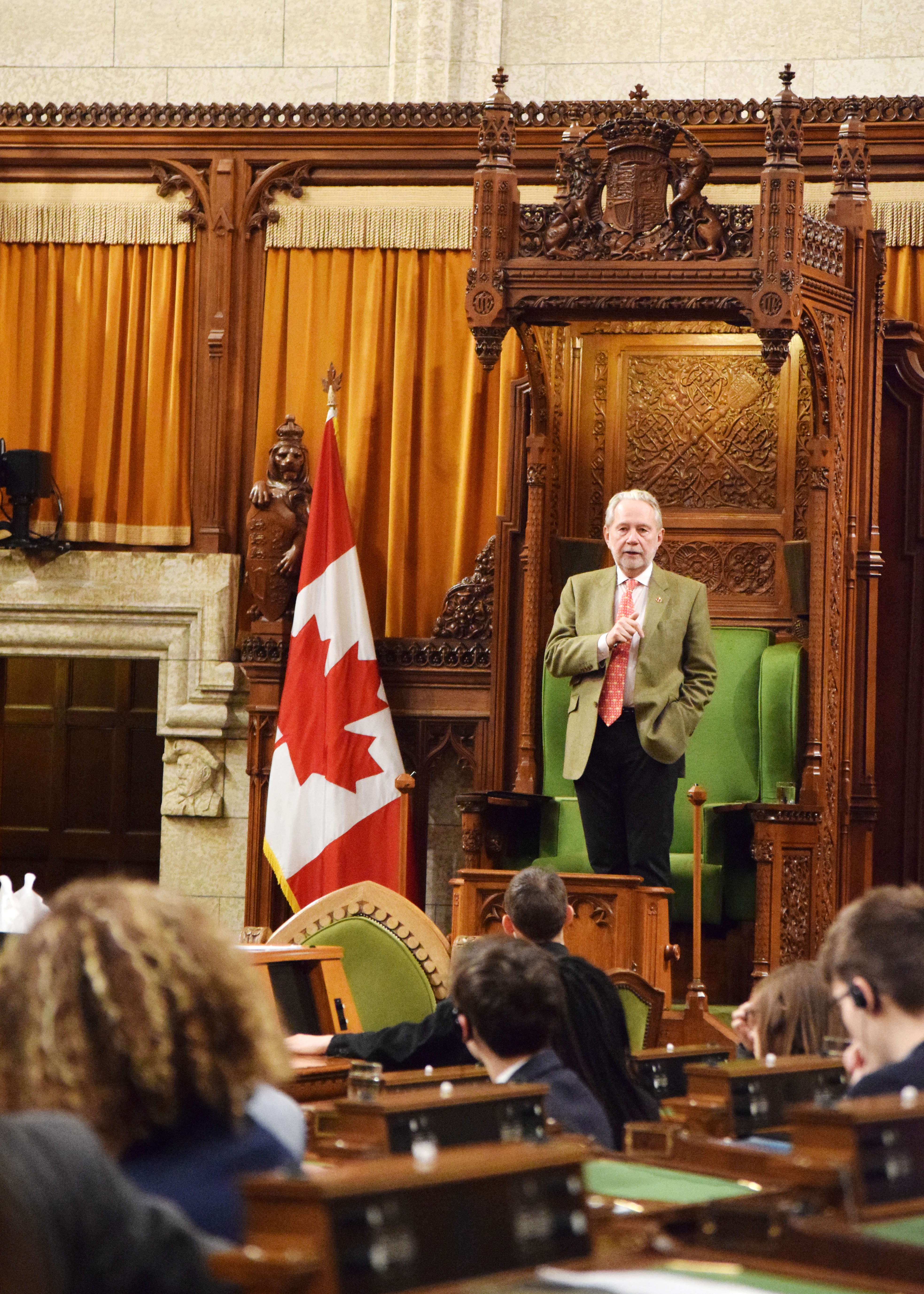 Friday, January 26 — Senator Peter Harder speaks to the 300 participants in the University of Ottawa’s 2018 model Parliament in the House of Commons Chamber. For this SENgage event, he spoke about his long career as a public servant and the values that have driven his service as a deputy minister and now, as a senator.