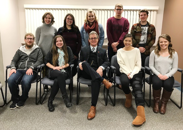 Thursday, January 18 — Senator Michael L. MacDonald meets with members of the University of Lethbridge’s History Club and Political Science Club. Earlier, he spoke to a history class about the Senate’s pre-Confederation roots and his personal perspective on the early history of his hometown, Louisbourg, Nova Scotia, as part of a SENgage event.