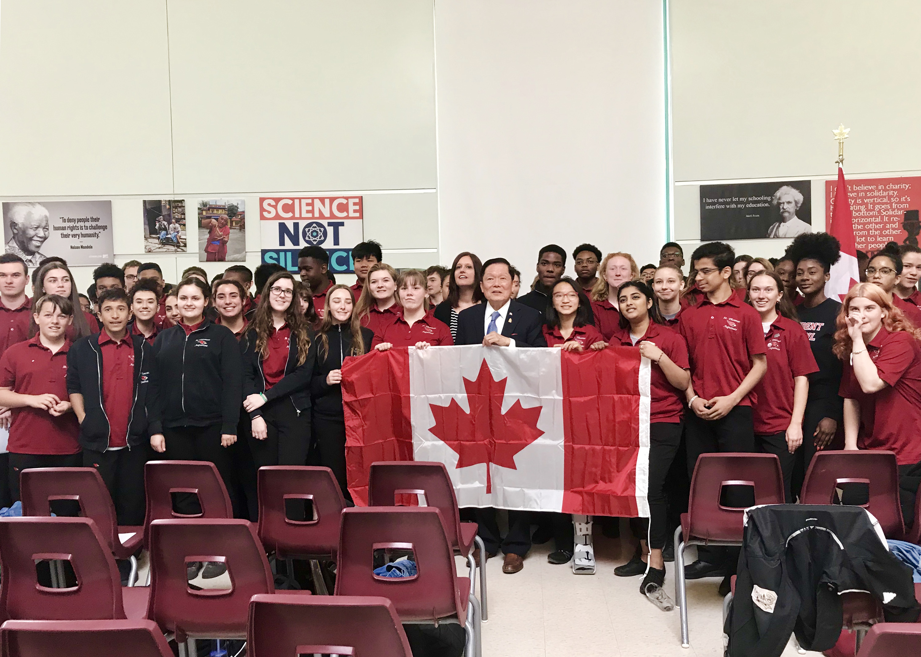 Monday, May 14 – Senator Victor Oh participates in a SENgage student-outreach event and speaks about the Senate of Canada to students at St. Thomas Aquinas Secondary School in Brampton, Ontario.