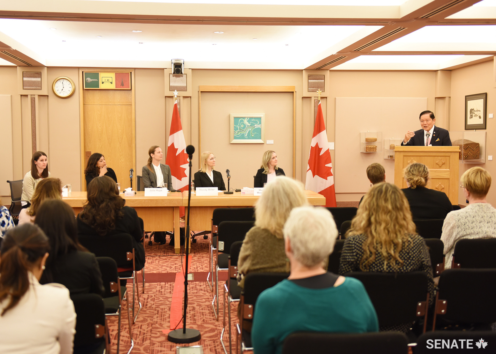 Wednesday, May 23 – Senator Salma Ataullahjan participates as a guest panelist during a Global Solutions symposium at Immaculata High School in Ottawa. The Global Solutions program, organized by education-advocacy organization The Learning Partnership, allows grade 11 and 12 students to develop critical thinking skills and propose solutions on global issues.