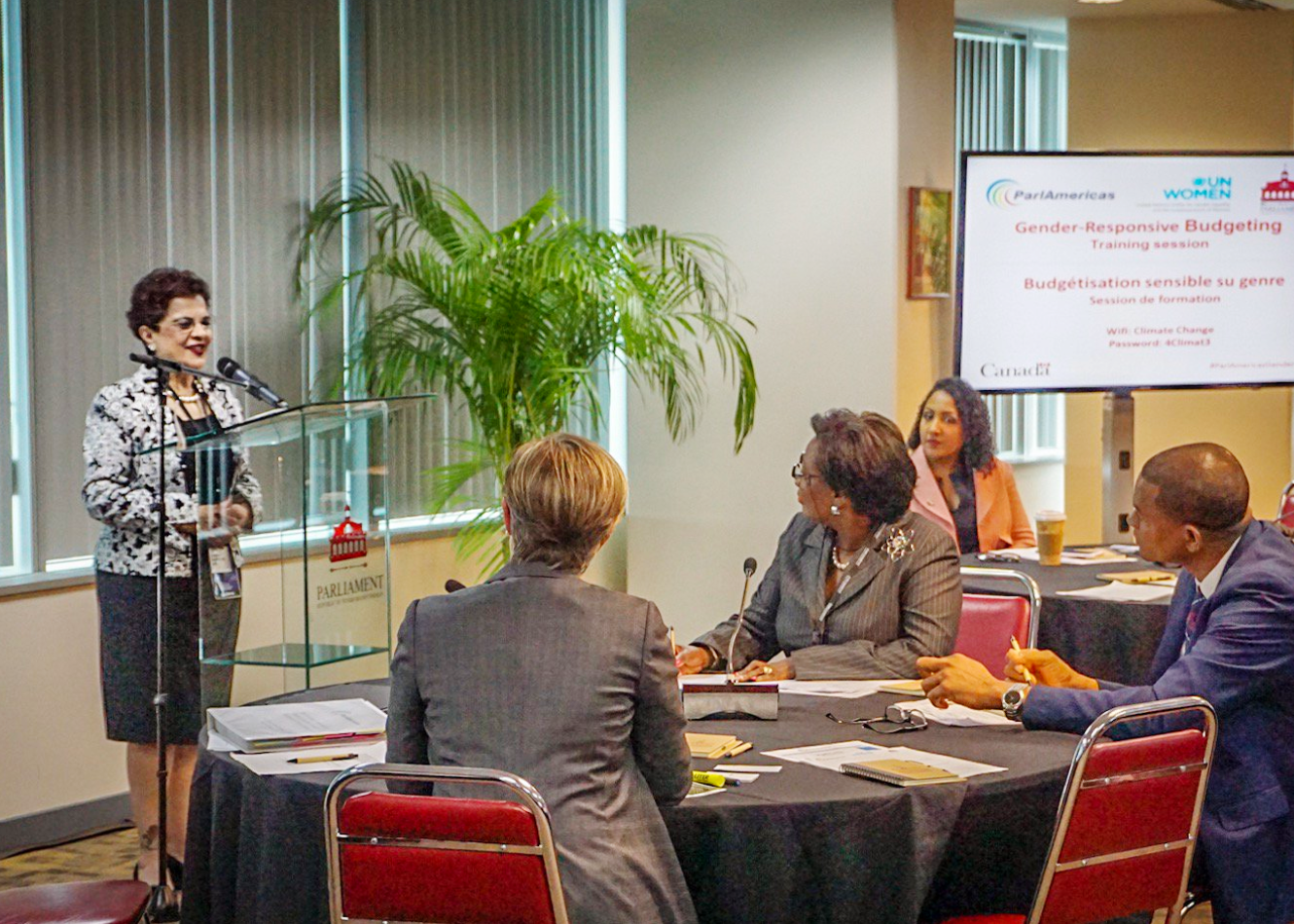 Tuesday, May 22 – On behalf of ParlAmericas Network on Gender Equality, Vice-President Senator Mobina S.B. Jaffer opens a training session on gender-responsive budgeting, which took place in Trinidad and Tobago. Senator Jaffer remarked that “the training sessions are a highlight of ParlAmericas’ gatherings, and a valuable opportunity for all of us both to engage in continuous learning and to exchange the experiences that will make us better legislators.”