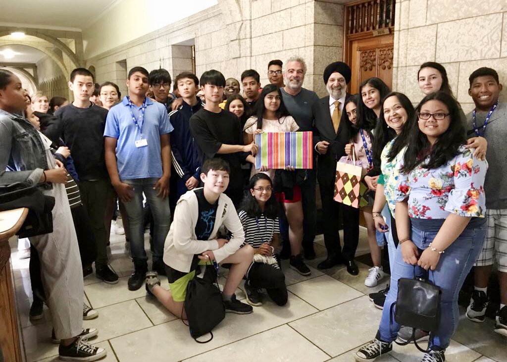 Thursday, June 14 – Senator Sarabjit S. Marwah welcomes Principal Rocco Coluccio, teachers, and the wonderful students from Etobicoke Ontario’s Islington Junior Middle School, to the Senate of Canada.
