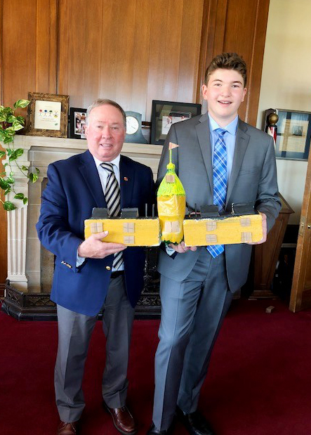 Thursday, June 21 – Senator Jim Munson has an uplifting visit from 15-year-old Vincent Lemieux from Montreal. Vincent brought along a self-made replica of Parliament’s Centre Block. He is a graduate of Montreal’s Summit School and part of the team at Spectrum Productions, which provides opportunities for youth and young adults on the Autism Spectrum through video and media production.
