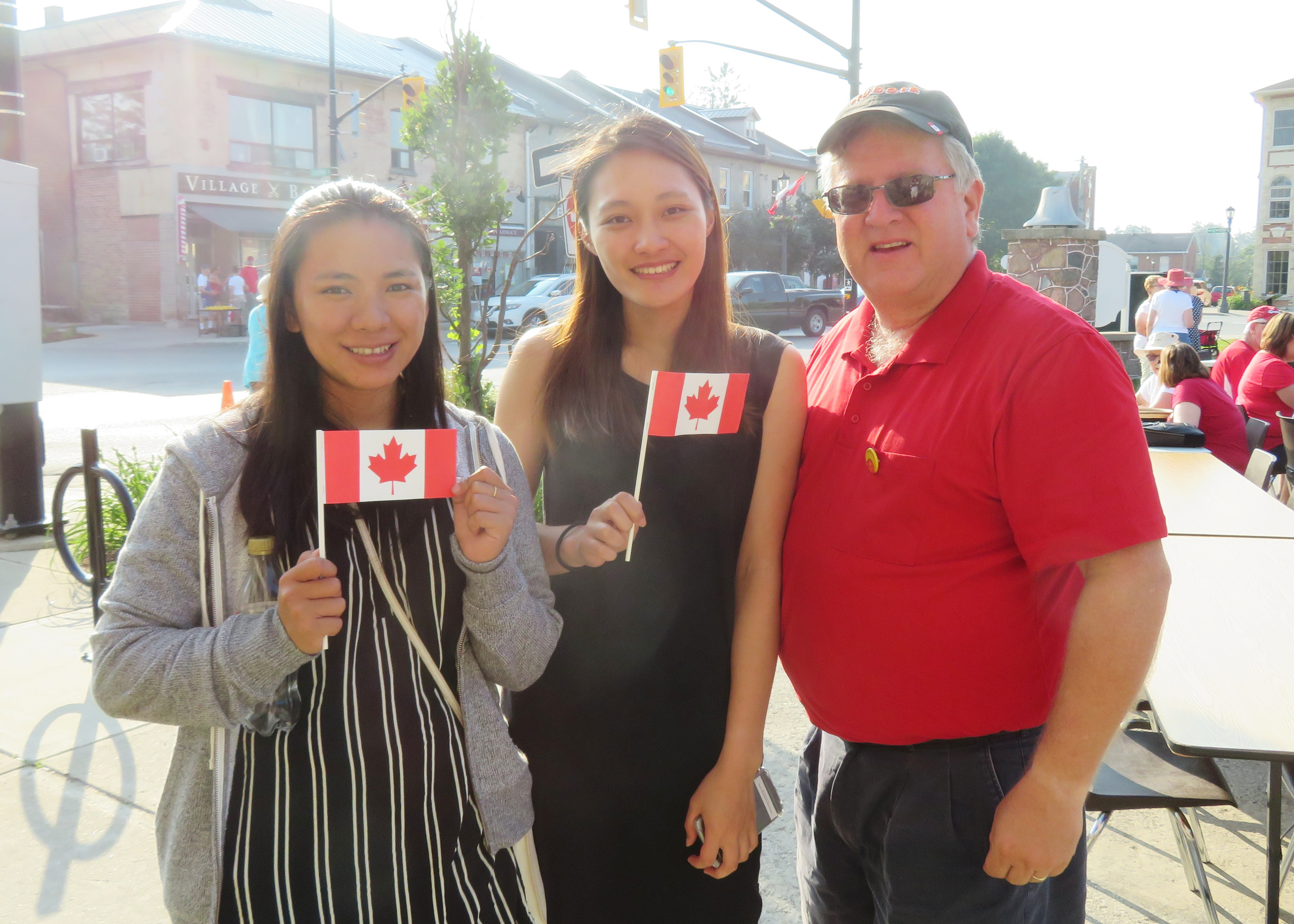 Sunday, July 1 – Senator Rob Black shares a moment in Centre Wellington, Ontario, with Grace I-bu and Puni Tanapima, delegates from the Canada Youth program, from Taiwan. Senator Black flipped pancakes with Mayor Kelly Linton at the Firefighters’ Breakfast, participated in the Dominion Day Parade in Elora, Ontario, and enjoyed time with family and friends.