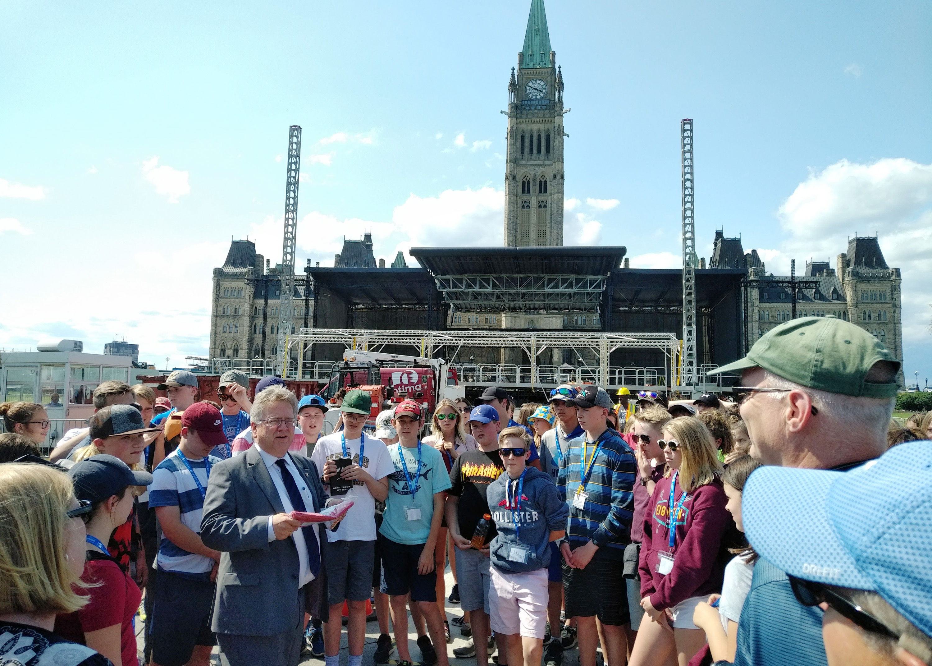 Wednesday, June 20 – Senator Rob Black meets Grade 8 students from Elora Public School in Wellington County, Ontario, during their visit to Parliament Hill. Senator Black attended Elora Public School when he was younger.