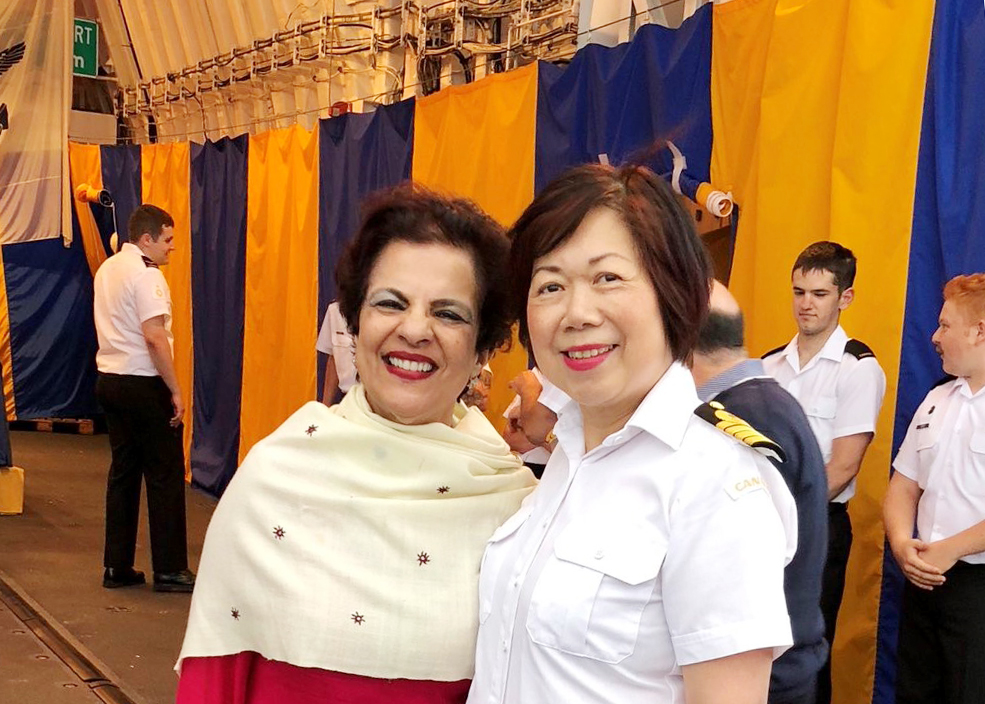Sunday, July 1 – Senator Mobina S.B. Jaffer and the Royal Canadian Navy’s newest Honorary Captain, Queenie Choo, CEO of SUCCESS – one of the largest non-profit social service organizations in British Columbia, celebrate 151 years of Confederation onboard HMCS Calgary for a special Canada Day fireworks reception in North Vancouver.