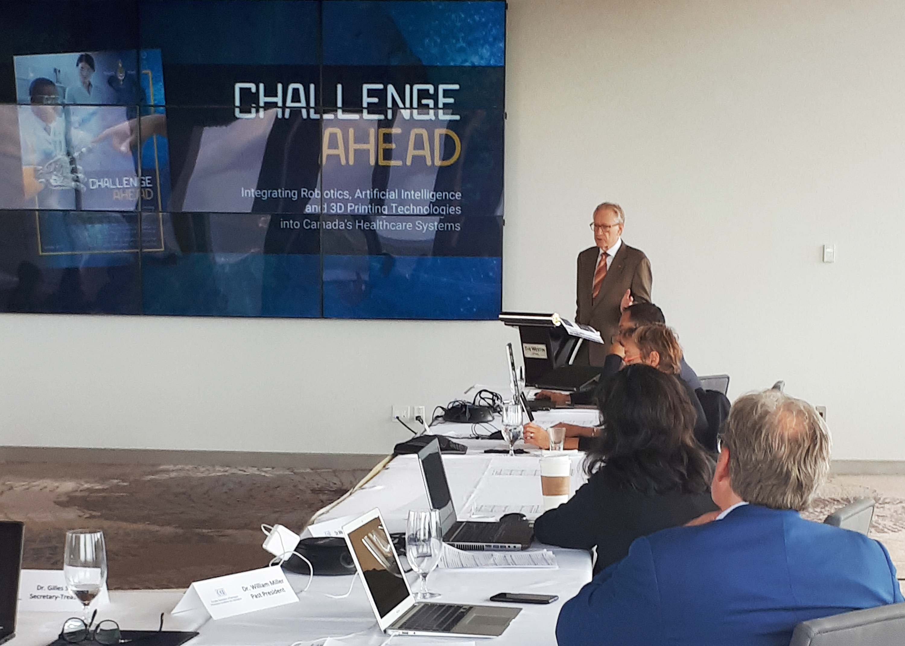 Tuesday, September 4 – The Hon. Art Eggleton, former senator, presented the recommendations from the Senate report Challenge ahead: Integrating Robotics, Artificial Intelligence and 3D Printing Technologies into Canada’s Healthcare System to the Canadian Association of Radiologists’ board of directors at the Westin Hotel in Ottawa, Ontario.