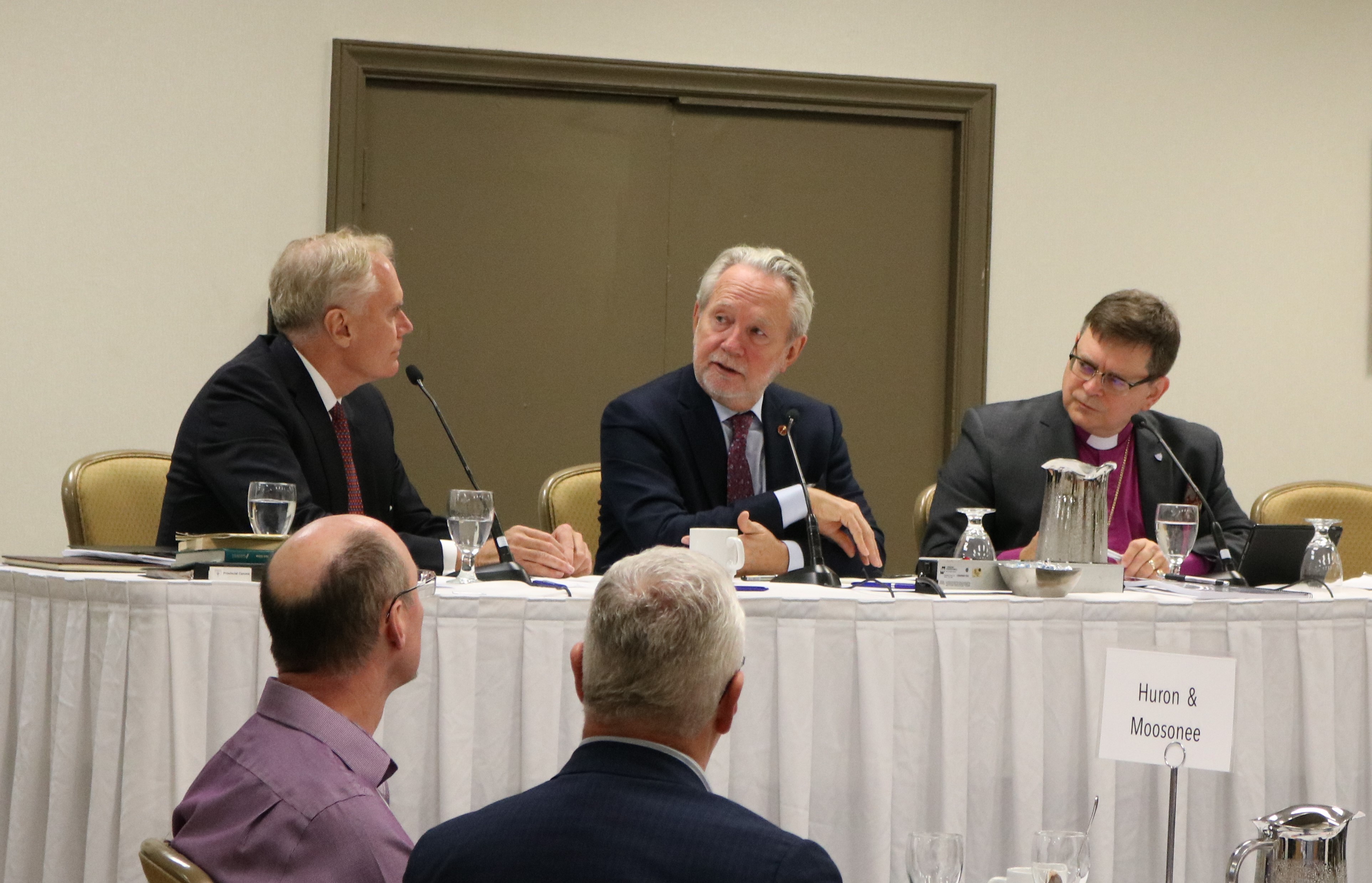Thursday, October 11 – Senator Peter Harder ,centre, participates in a panel discussion entitled “A Hopeful Church in Changing Times” at the Anglican Diocese of Ontario’s provincial synod held from October 9 to October 12 in Ottawa. Senator Harder is joined by the Canadian Global Affairs Institute’s Colin Robertson, left, and Archbishop Colin Johnson.