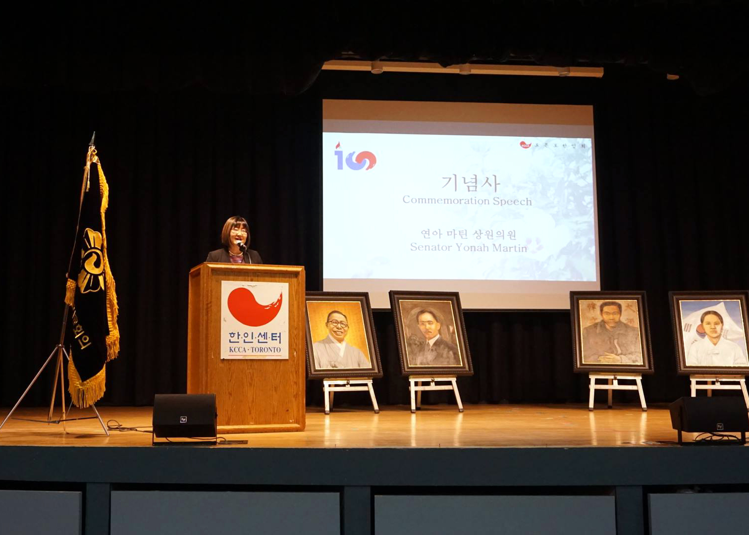 Friday, March 1 – Senator Yonah Martin speaks at an event hosted by the Korean Canadian Cultural Association marking the 100th Anniversary of Korea's Independence Movement Day. Senator Martin was joined by members of the Korean community to celebrate this historic occasion.