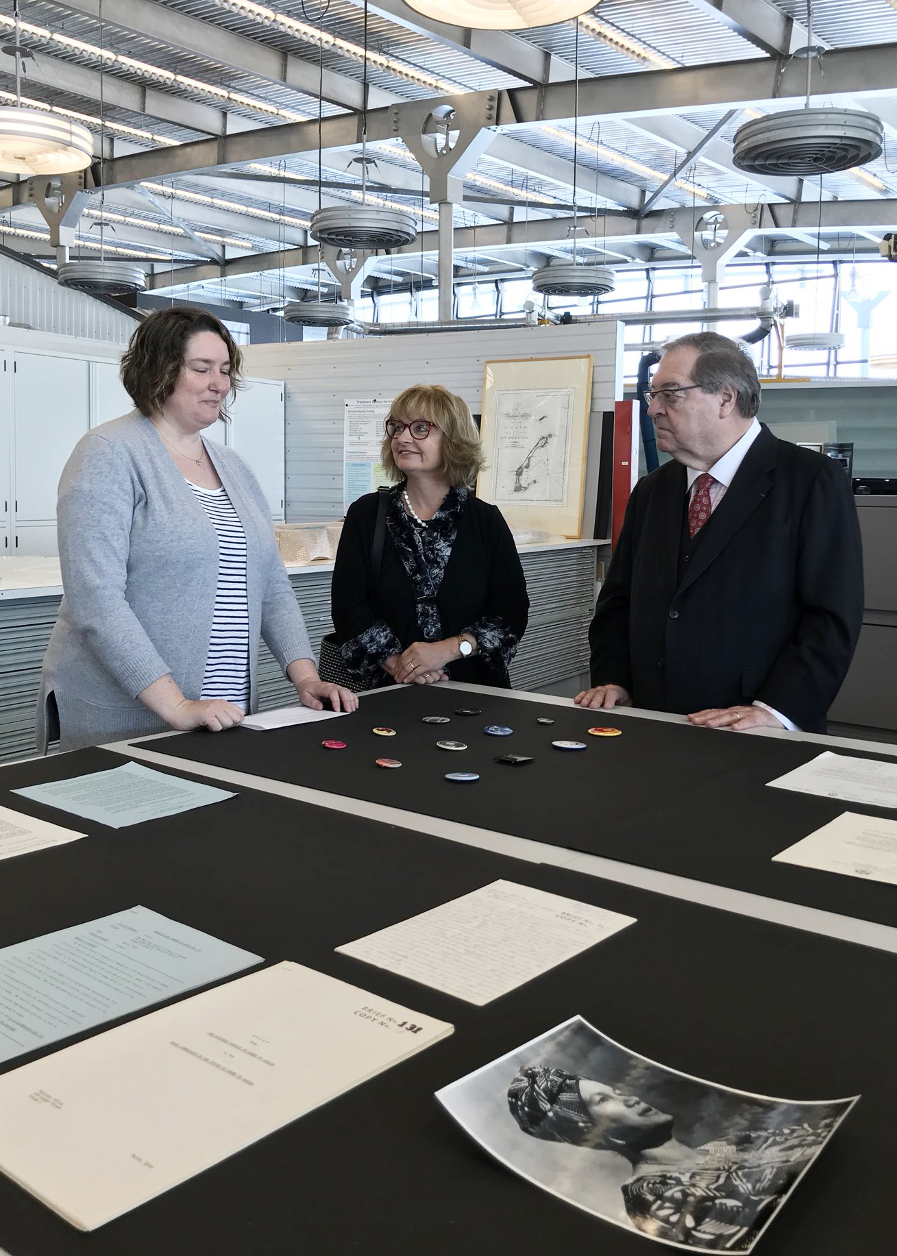 Thursday, March 7 – Senator Julie Miville-Dechêne is accompanied by Canadian historian Guy Berthiaume, the Librarian and Archivist of Canada, and Senior Archivist Christine Barrass, during a tour of the Library and Archives Canada Preservation Centre in the National Capital Region.
