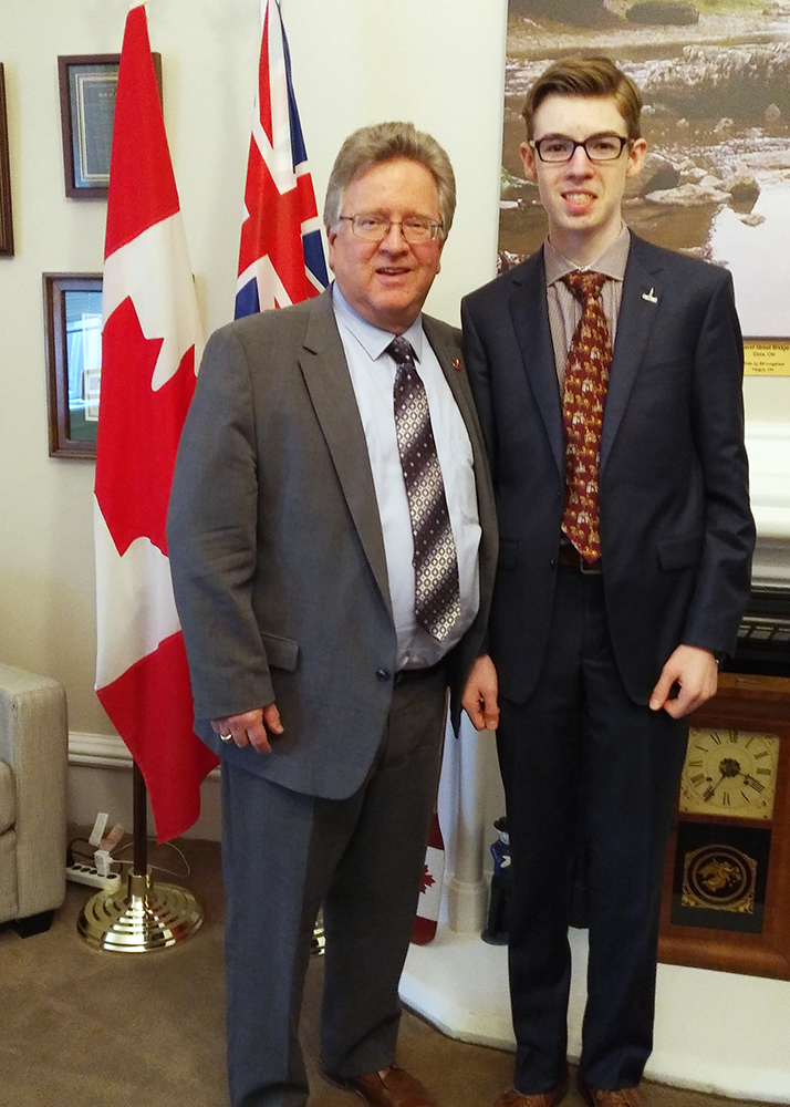 Thursday, March 21, 2019 – Senator Rob Black meets Will Dixon of St. Jacob’s, Ontario, in his office in Ottawa. Will is a participant in the Forum for Young Canadians program, where participants visit the Senate and House of Commons to learn about the functions of Canada’s Parliament.