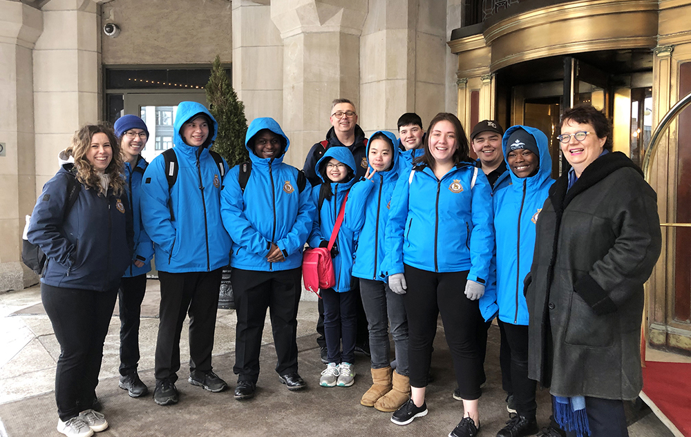 Friday, March 22, 2019 – Senator Paula Simons has a chance encounter with a squadron of Edmonton air cadets (Blatchford Field Squadron 504) in Ottawa outside of the Chateau Laurier.