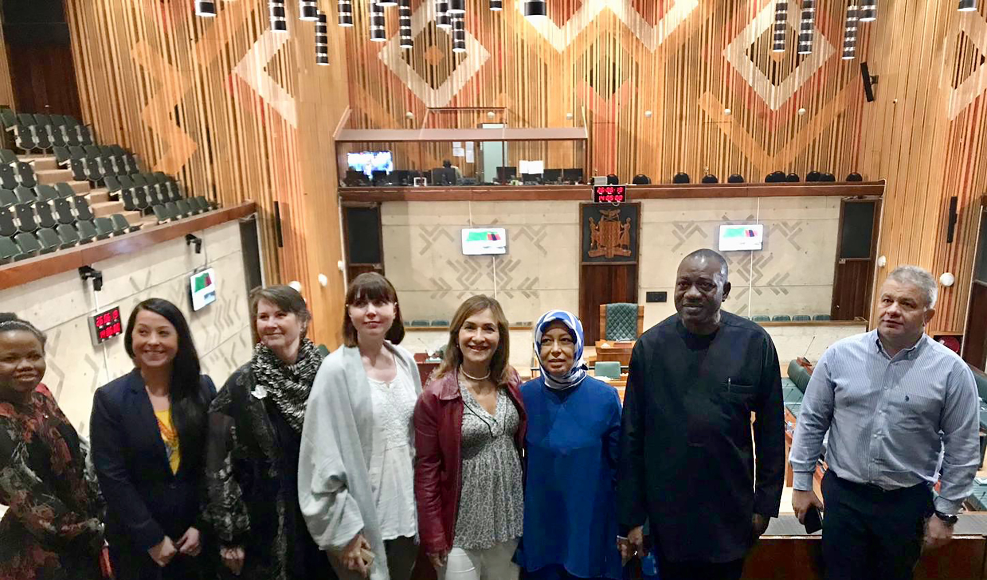 Thursday, June 27, 2019 — Senator Marilou McPhedran participates in a discussion about universal healthcare with a delegation from the European and African Parliamentary Forums and members of the National Assembly of Zambia in Lusaka.