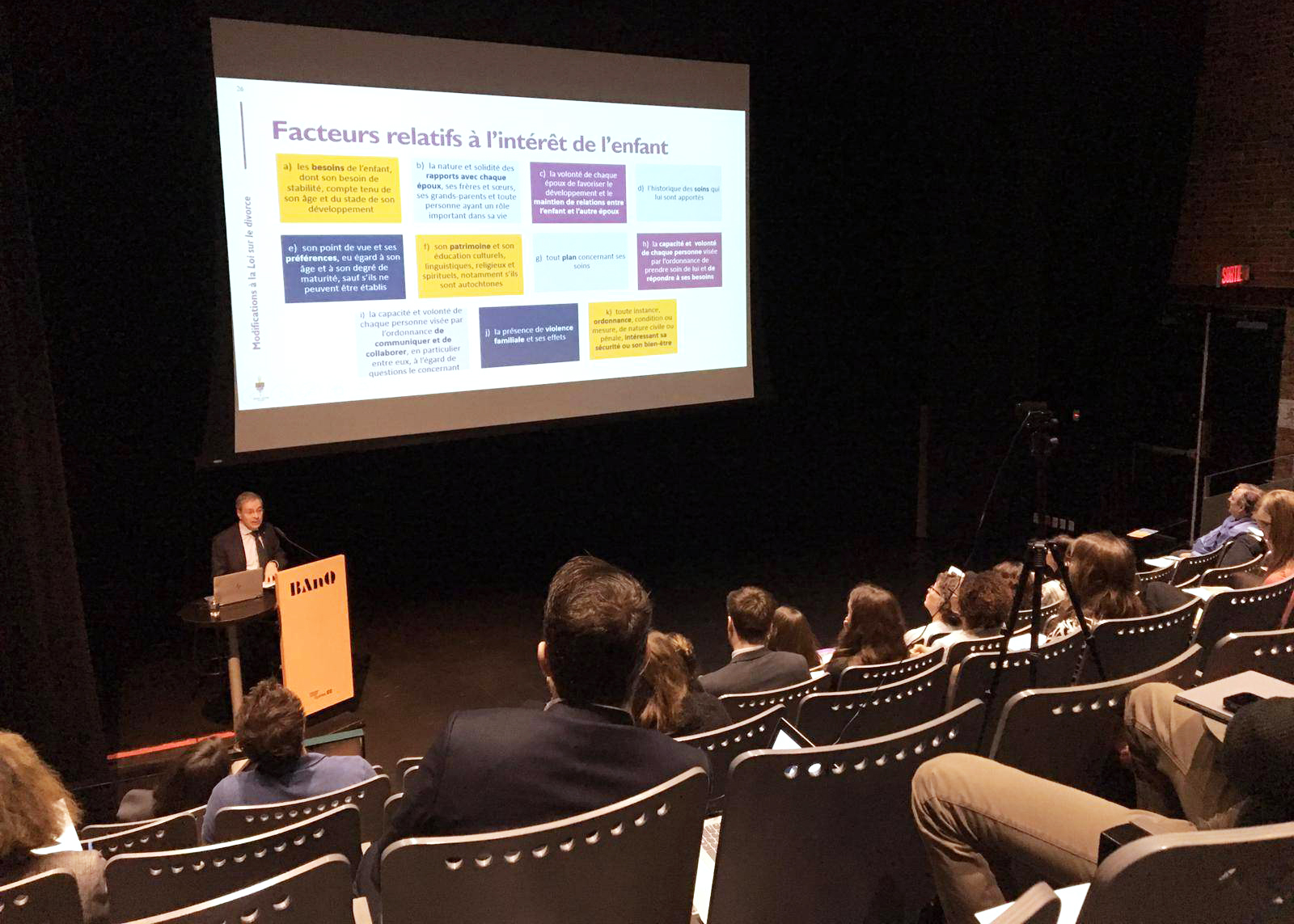 Friday, November 1, 2019—Senator Pierre J. Dalphond gives a presentation to Quebec notaries about changes to the Divorce Act. The event was organized by the Association professionnelle des notaires du Québec.