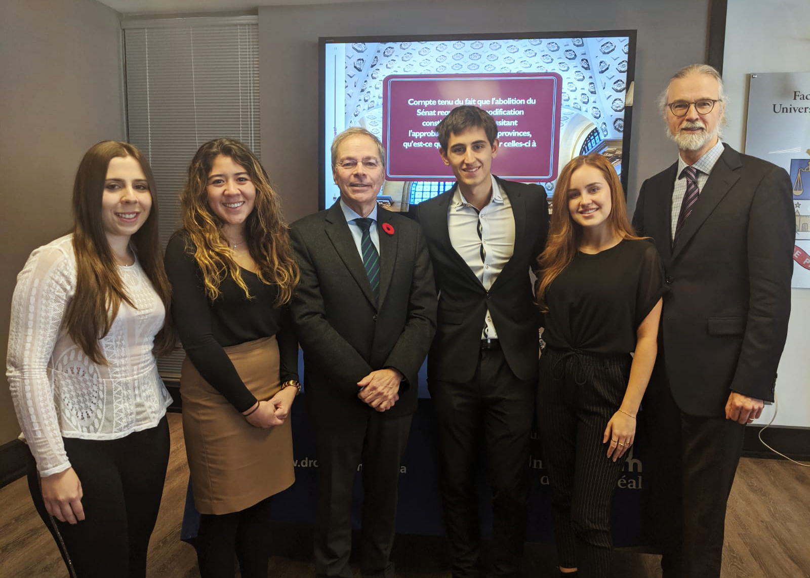 Wednesday, November 13, 2019—Senator Pierre J. Dalphond speaks to law students at l’Université de Montréal during a conference organized by Professor Jean Leclair from the Law-Policy Committee and Professional Development Center of the university.