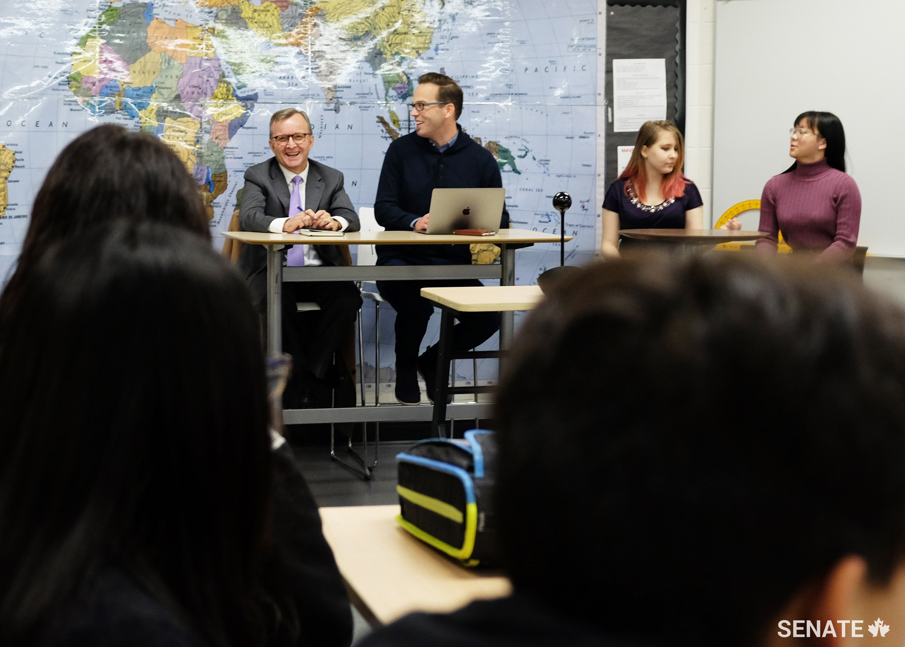 - Tuesday, November 12, 2019—Speaking at the Laval University political science class, Senator Dennis Dawson gave an overview of his work on the Senate’s foreign affairs committee and his involvement in parliamentary diplomacy over his career on Parliament Hill as a senator and as an MP. SENgage coordinated this event.