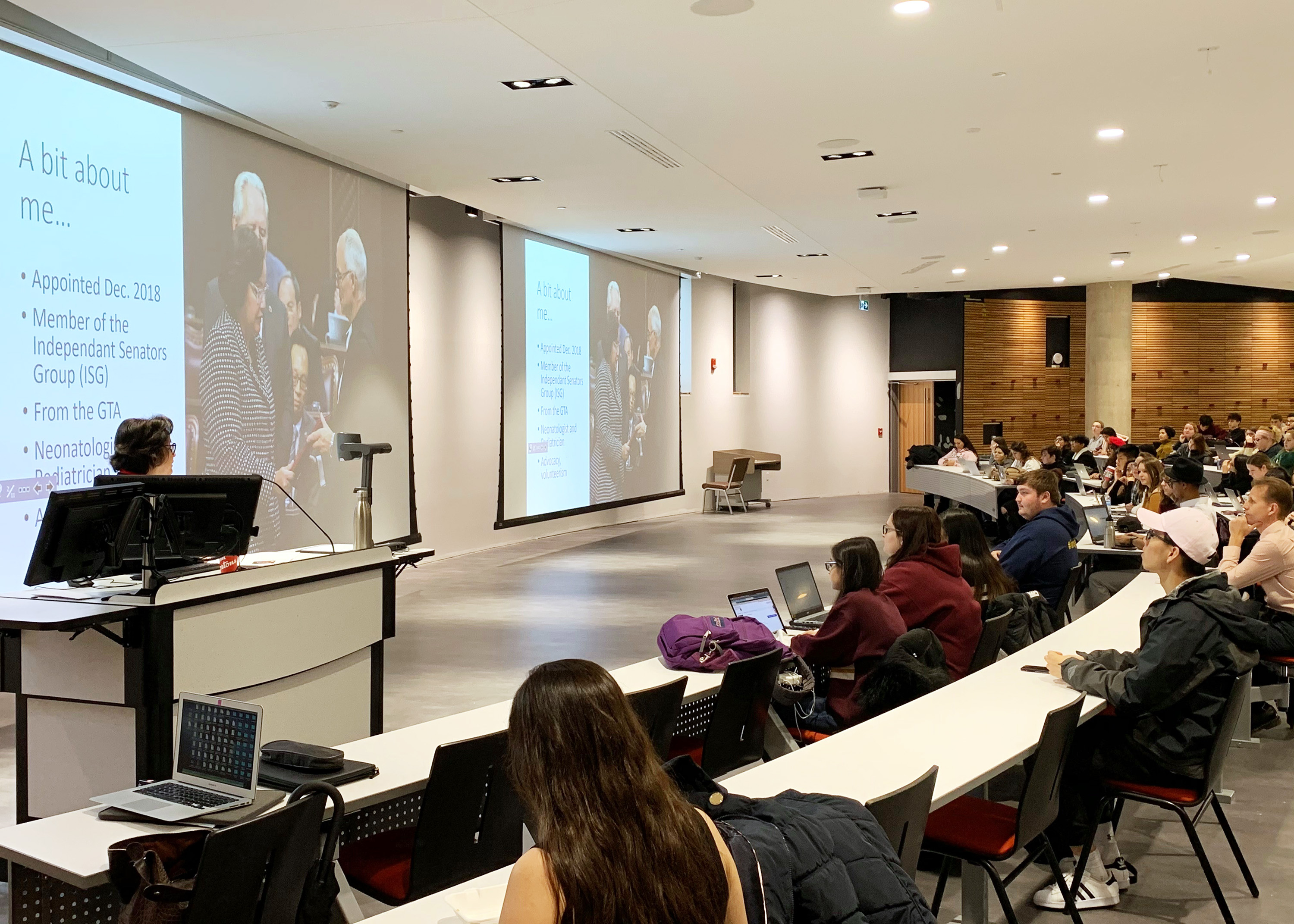 Thursday, November 7, 2019—Senator Rosemary Moodie gave a SENgage guest lecture to the survey class Government, Power and Politics at McMaster University’s Department of Political Science where she talked about the role and work of the Senate.
