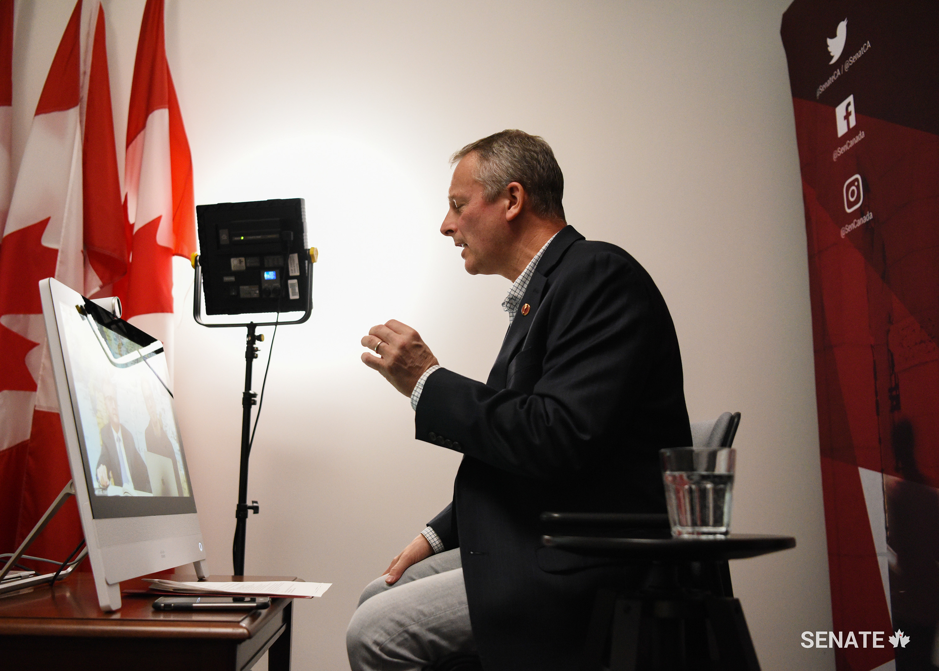 Thursday, November 14, 2019—Senator David Wells discusses the role of the Senate with students from Alberta to New Brunswick as part of a virtual town hall organized by the Centre for Global Education.