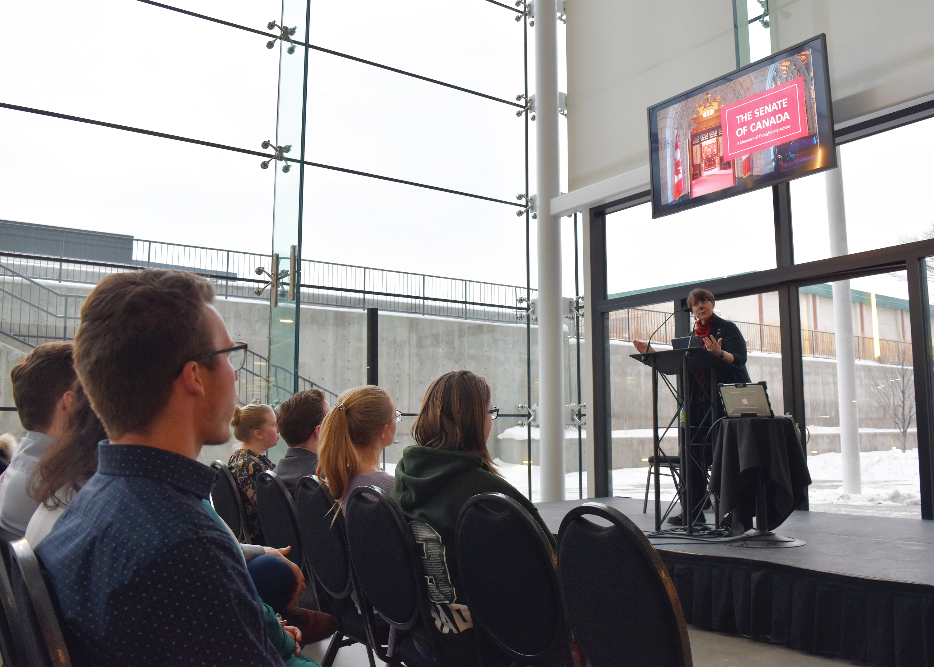 Monday, January 20, 2020 – Senator Marilou McPhedran visits the University of Alberta as part of its Student Leaders week to speak to students about increasing youth engagement with Canada’s Parliament.