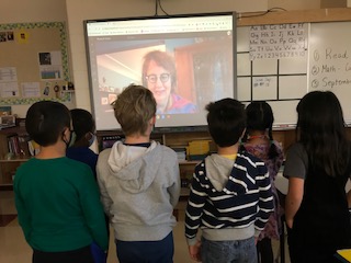 Thursday, October 8, 2020 — Senator Paula Simons reads to Grade 2 and 3 students at the Archbishop Joseph MacNeil School during READ IN Week in Edmonton, Alberta.