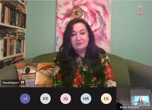 Friday, October 16, 2020 — Senator Salma Ataullahjan speaks about her recent work in international human rights and the role of the Senate to a Grade 11 law class from Leamington District Secondary School in Leamington, Ontario.