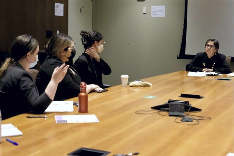 Thursday, June 9, 2022 – Senator Kim Pate meets with the 12 interns from the British Columbia Legislative Internship Program during their study tour. The meeting, organized by SENgage, gave the interns the chance to ask the senator about her path to the Senate, her law studies and her career promoting minority legal rights and prison reform.