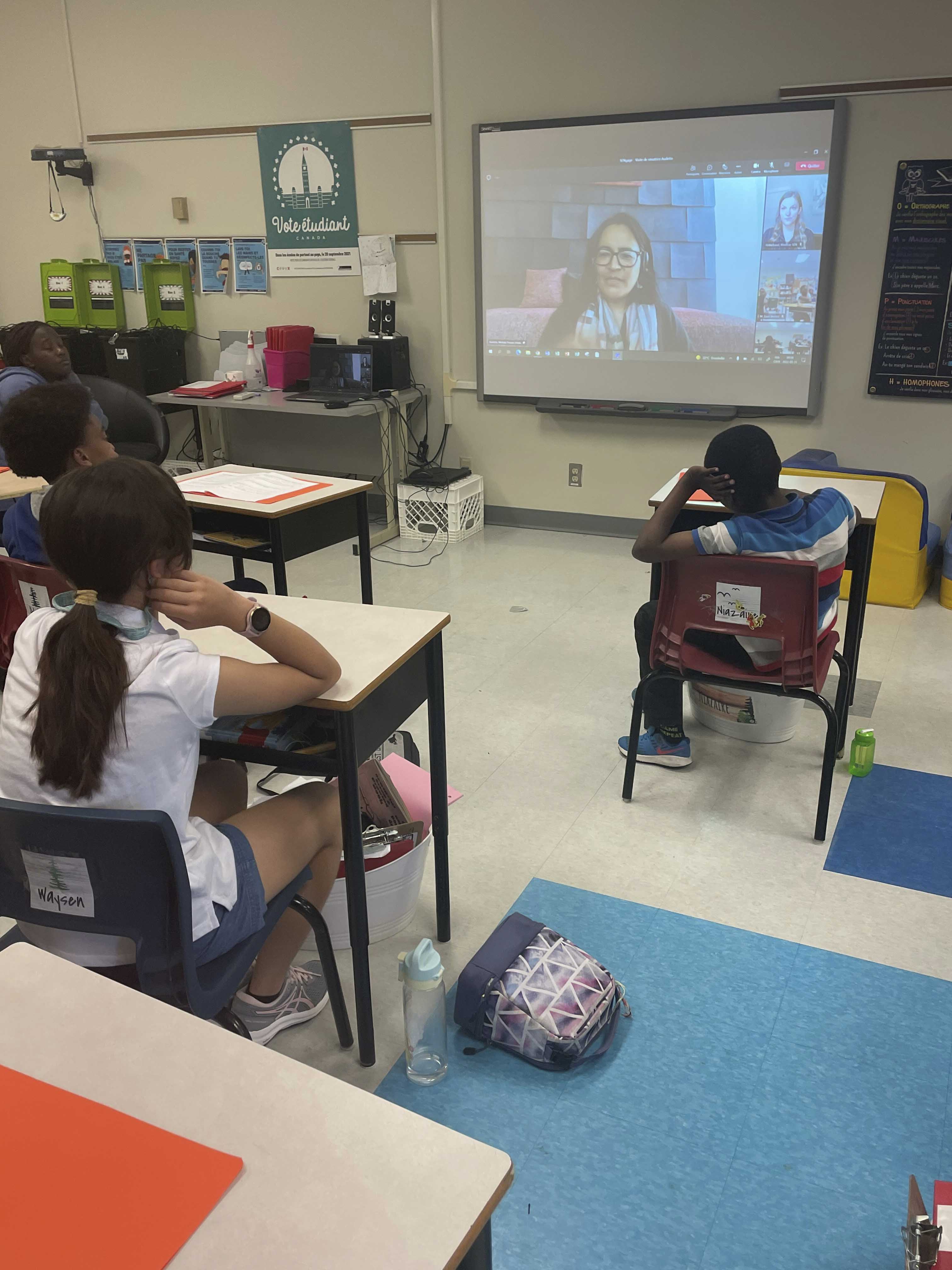 Tuesday, May 31, 2022 – Michèle Audette meets francophone elementary students from Saint-François-d’Assise Catholic school in Ottawa, Ontario, during a virtual SENgage event. She captivated her audience speaking about Indigenous History Month, her path to the Senate, the role of senators and the importance of truth and reconciliation.
