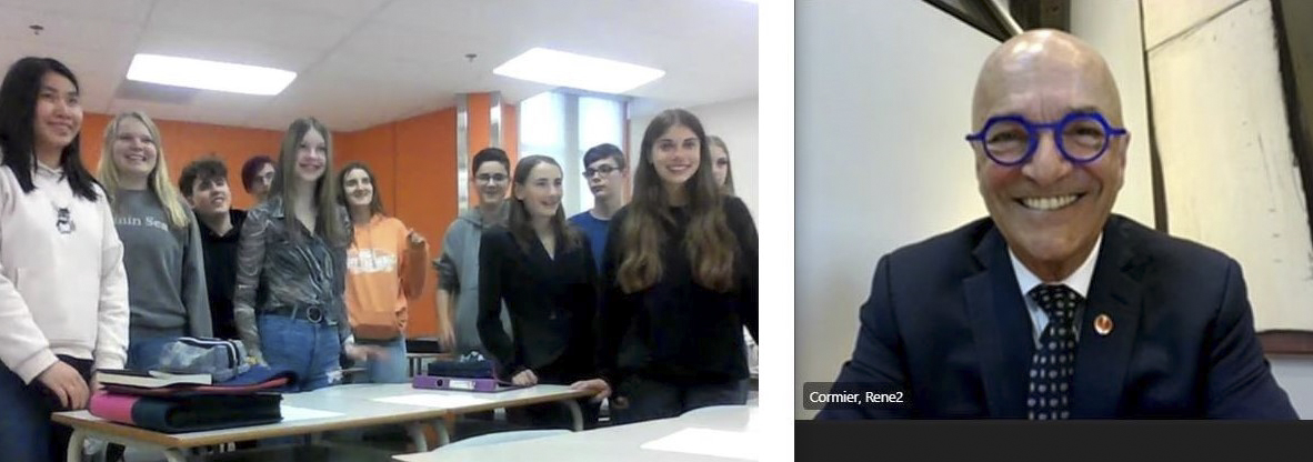 Monday, June 6, 2022 – Senator René Cormier meets with francophone Grade 9 students from the W.-Arthur-Losier school in Tracadie-Sheila, New Brunswick. During his presentation, he discussed his work as a senator, his path to the Senate and the upcoming challenges for Parliament’s Upper Chamber.