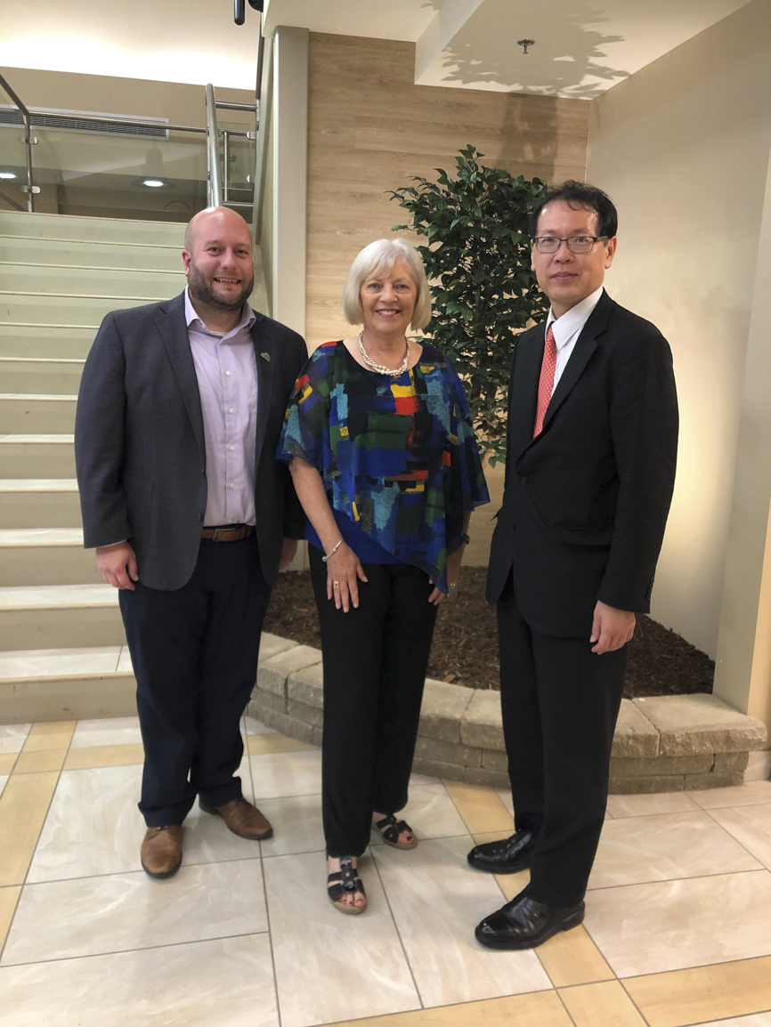 Wednesday, August 31, 2022 – Senator Nancy J. Hartling (centre) meets with Minister Furuya Tokuro (right), the Embassy of Japan in Canada’s Deputy Head of Mission, at the town hall of Riverview, New Brunswick, to discuss economic development in the Atlantic provinces, women’s issues in the workplace and other matters. Riverview Mayor Andrew J. LeBlanc (left) greeted them at the town hall.