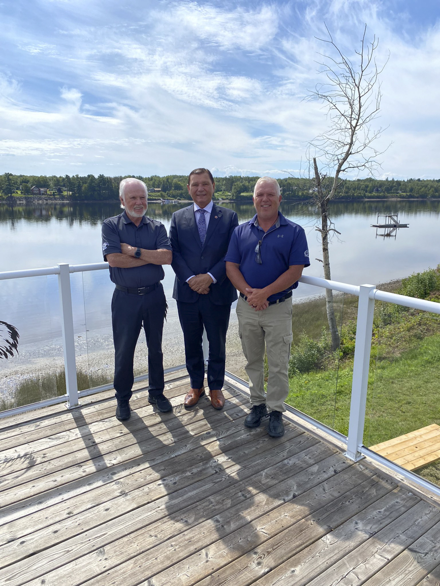 Thursday, September 8, 2022 – Accompanied by Roger Augustine (left) and Galen Augustine (right), Senator Brian Francis visits Gitpo Spirit Lodge in Eel Ground First Nation (New Brunswick) to learn more about their work in providing a range of supports in cultural teachings including but not limited to, drumming, singing and dancing. The lodge seeks to tackle the stigma around treatment for Indigenous men and boys who face mental health challenges. Senator Francis was impressed by their efforts to improve the health and well-being of First Nations in the community and beyond.