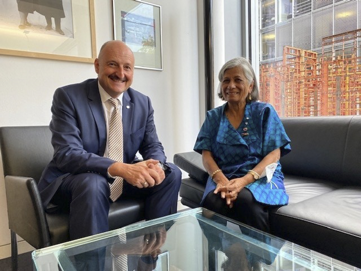 Tuesday, September 6, 2022 – In Berlin, Germany, Senator Ratna Omidvar, co-chair of the Canada-Germany Interparliamentary Group (CADE) meets with German Member of Parliament, Bernd Rützel, who Chairs the German Arm version of the Group. They discussed how Canada and Germany can strengthen their relationship to build a stronger and better future together.