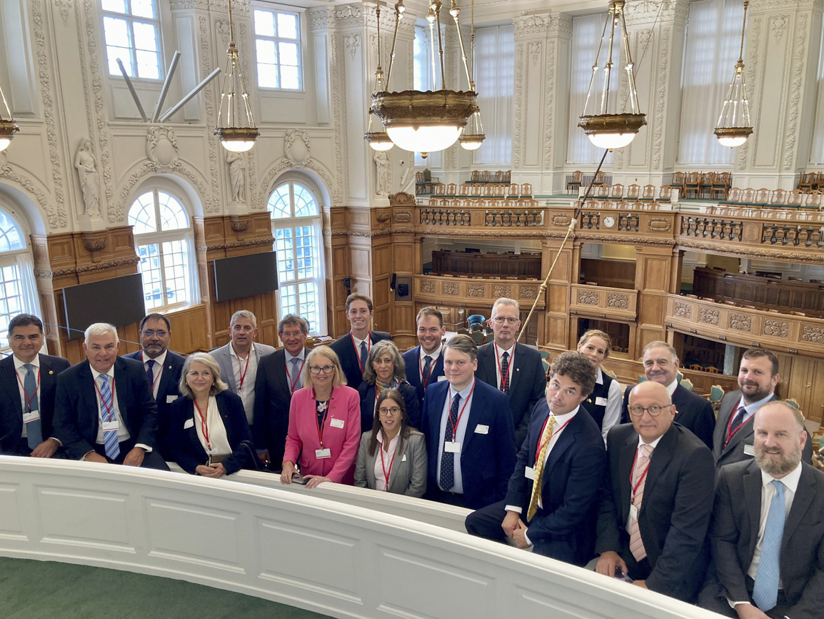 Monday, September 12, 2022 – In Copenhagen, Denmark, Senator Jane Cordy (fourth from the left, front row) chairs a meeting at the Folketing (Danish Parliament) for the Sub-Committee on Resilience and Civil Security of the NATO Parliamentary Assembly Committee on Democracy and Security. They discussed climate change in the Arctic and Danish security policy after the invasion of Ukraine.