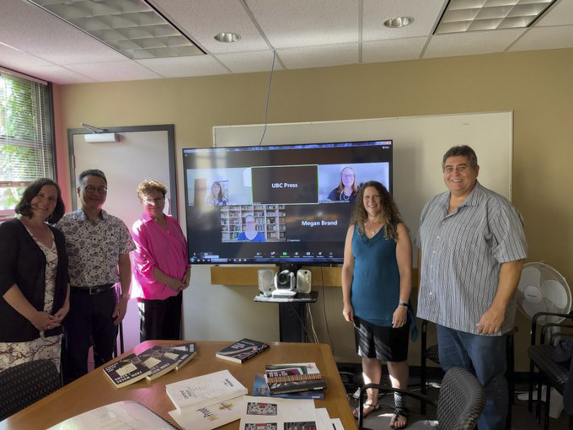Thursday, September 1, 2022 – Senator Yvonne Boyer (third from the left) participates in a hybrid meeting with UBC Press executives to discuss ways to help Indigenous authors through the publishing process and how to market to Indigenous audiences.