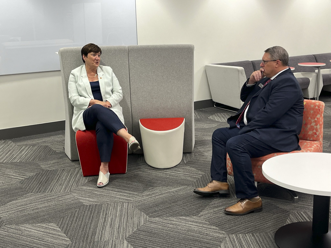 Friday, September 9, 2022 – As part of a week-long series of meetings in Calgary, Alberta, Senator Karen Sorensen, who co-chairs the Parliamentary Tourism Caucus, meets with Kurby Court, President and CEO of the Calgary TELUS Convention Centre. She toured the centre and learned more about the impact convention centres have on the economy and local tourism as well as the opportunities and challenges the industry faces.