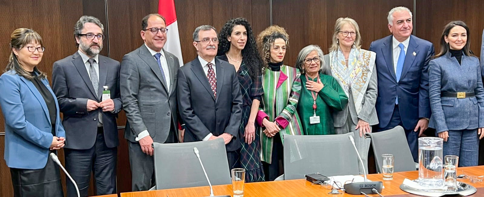 Monday, March 27, 2023 – In her capacity as co-chair of the Inter-Parliamentary Friendship Group for a Free Iran, Senator Ratna Omidvar, fourth from right, co-hosted a meeting with parliamentarians and members of the Alliance for Democracy and Freedom in Iran (ADFI). During the event, participants discussed a way forward to creating a secular and democratic Iran. Pictured from left: Senator Yonah Martin; ADFI member Hamed Esmaeilion; member of Parliament (MP) for Willowdale Ali Ehsassi, ADFI member Abdulla Mohtadi; Outremont MP Rachel Bendayan; ADFI member Masih Alinejad; Senator Omidvar; Aurora—Oak Ridges—Richmond Hill MP Leah Taylor Roy; ADFI member Reza Pahlavi; and ADFI member Nazanin Boniadi.