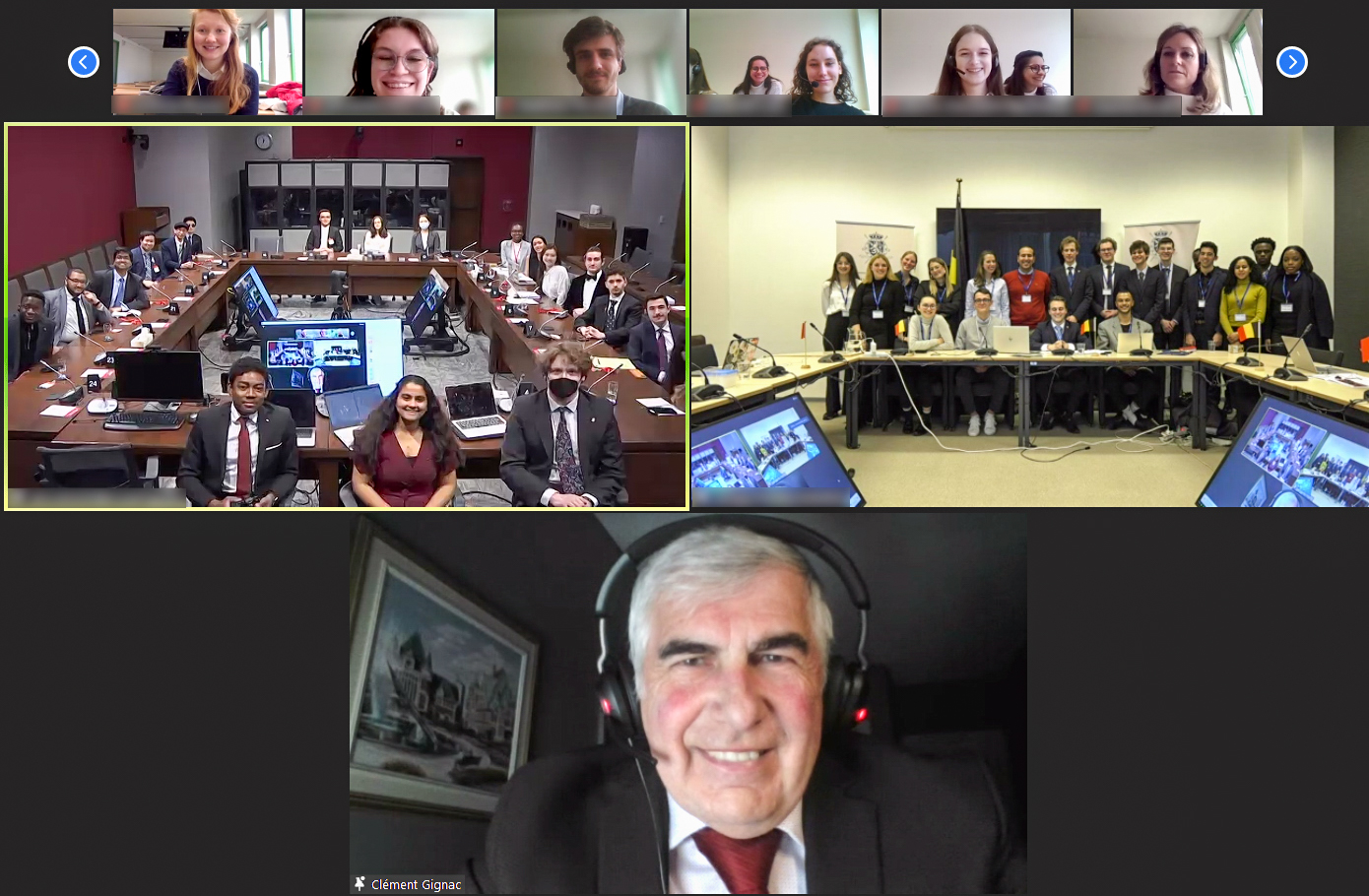 Wednesday, March 15, 2023 – Senator Clément Gignac speaks to students involved in the University of Ottawa’s Model Parliament about his role as co-chair of the Canada-Belgium Parliamentary Friendship Group and the importance of bilateral collaboration. Participants simulated diplomatic discussions with counterparts in Brussels, Belgium, as part of their Model Parliament.