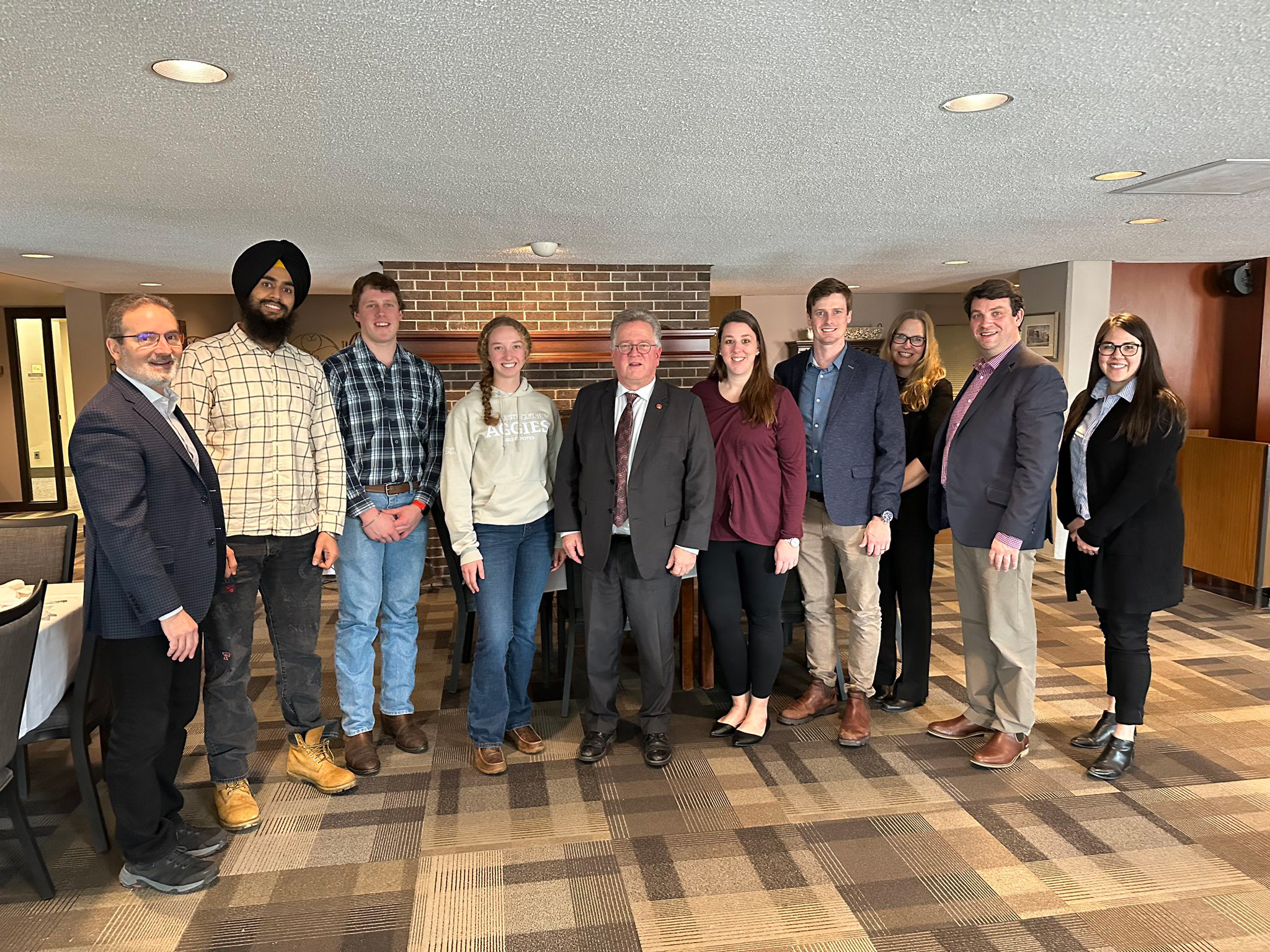 Monday, February 27, 2023 – Senator Rob Black, centre, attends the Ontario Agricultural College’s alumni luncheon at the University of Guelph, in Ontario. He spoke about the Senate Committee on Agriculture and Forestry’s study on soil health and the importance of research and innovation in the sector.