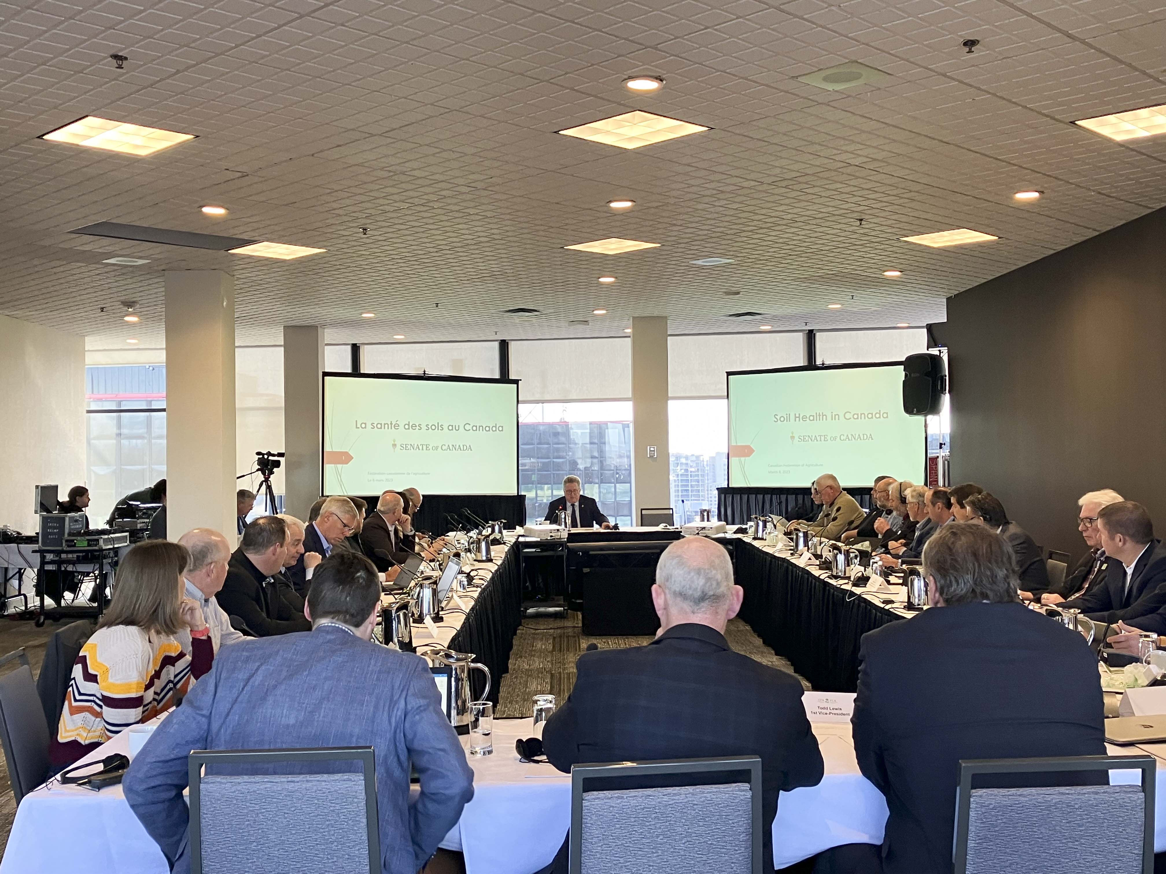 Wednesday, March 8, 2023 – Senator Rob Black, Chair of the Senate Committee on Agriculture and Forestry, speaks to the Canadian Federation of Agriculture (CFA) board of directors and other stakeholders in Ottawa, Ontario. He gave a presentation on the committee’s ongoing soil health study for the CFA’s annual general meeting, which invites participants from across the industry to support agriculture, agri-food and processing sectors.