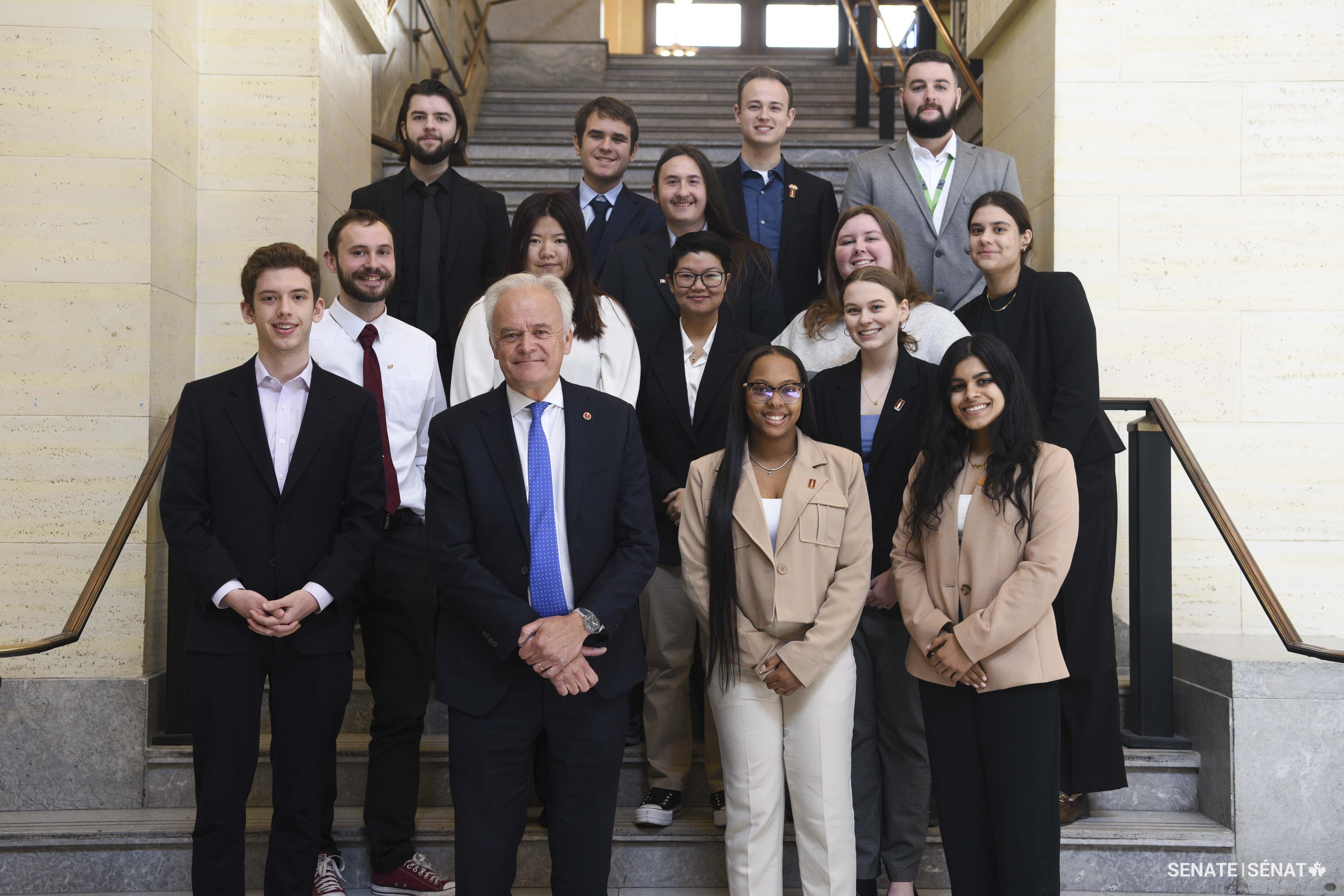 Wednesday, May 17, 2023 – Students from the University of Michigan-Dearborn participating in their school’s Ottawa Internship Program meet with Senator Peter M. Boehm during a visit to the Senate of Canada Building organized by SENgage. Participants learned about the history and role of the Senate and discussed the relationship between Canada and the United States. Senator Boehm also shared his experience as a former foreign service officer.