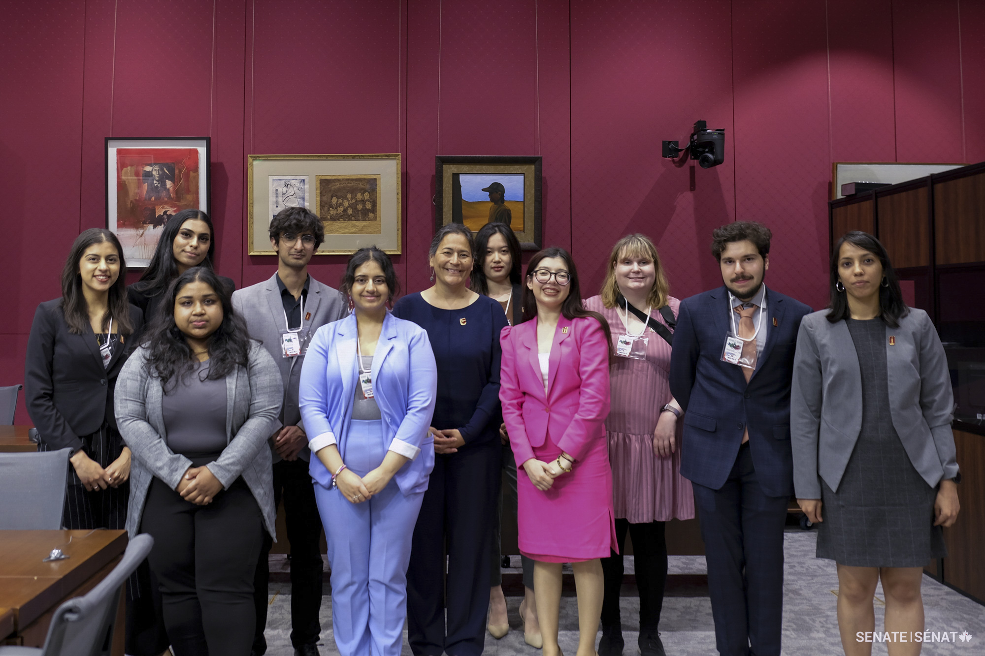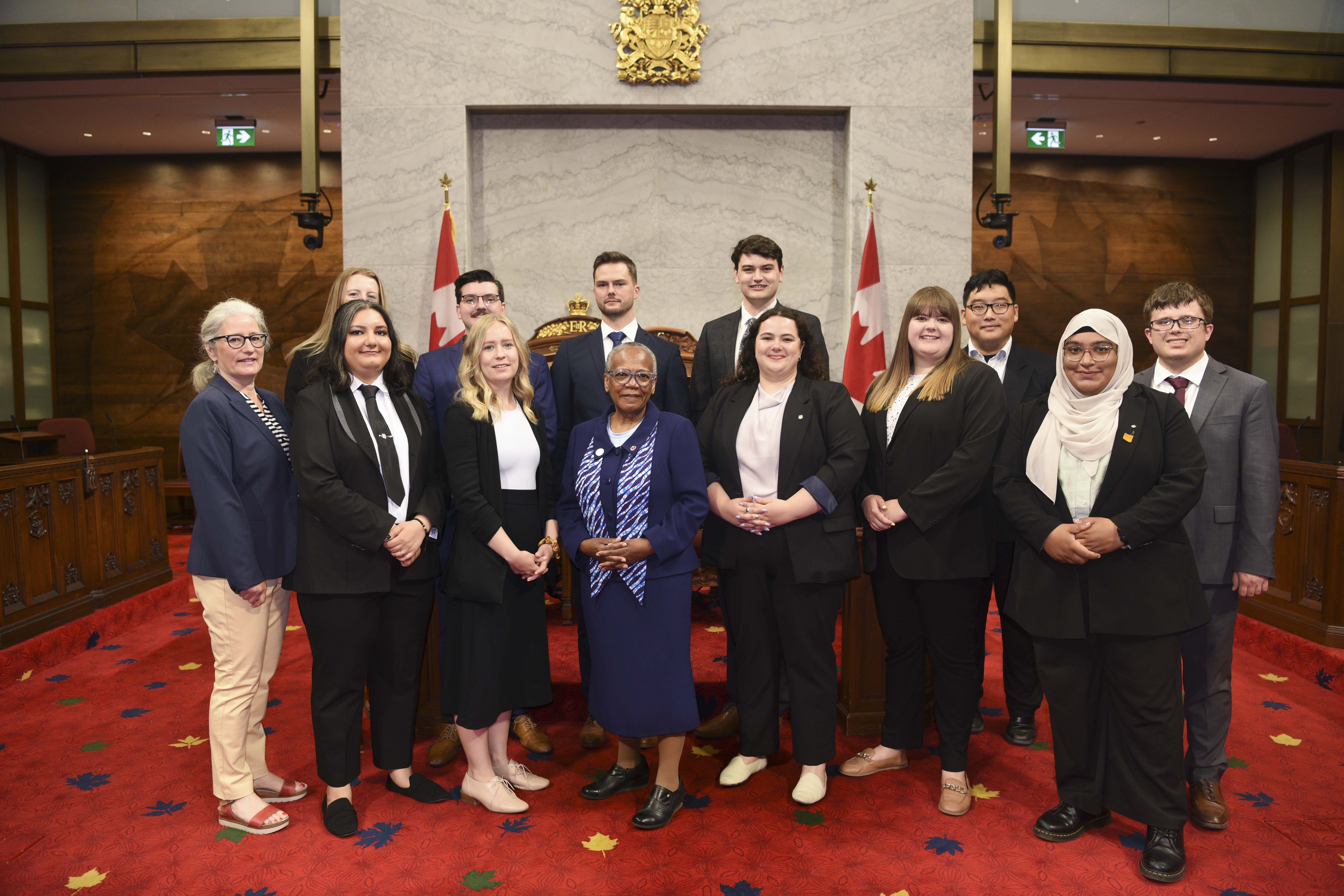 Wednesday, June 7, 2023 – Senator Wanda Thomas Bernard, front row, fourth from left, meets with British Columbia legislative interns at the Senate of Canada Building. During this visit organized by SENgage, the interns learned about the senator’s path to the Senate, and her interests in community organizing, activism and advocacy. They also learned how her time at the Senate has shaped her views.