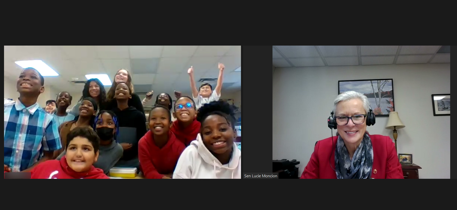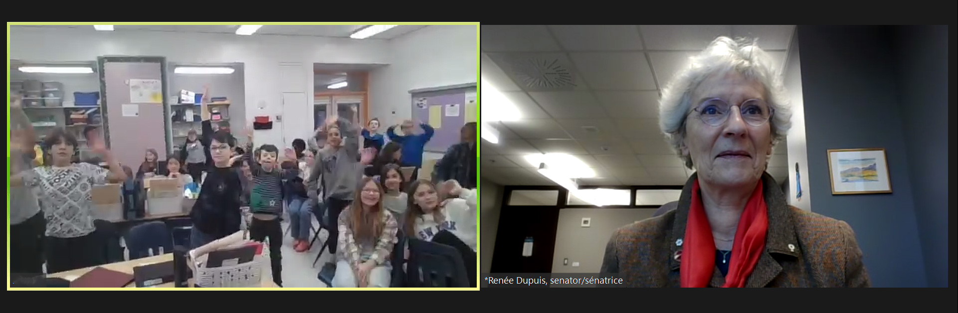 Thursday, November 23, 2023 – Senator Renée Dupuis; virtual visit, organized by SENgage, with students from Lacerte School, Winnipeg, Manitoba.