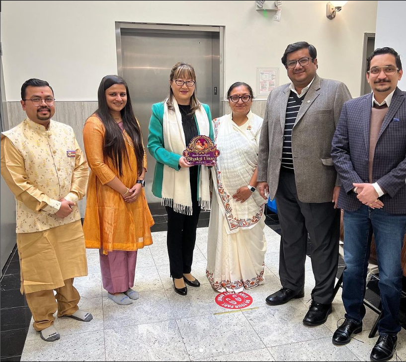 Sunday, November 26, 2023 – Senator Yonah Martin, third from left; celebration of the end of Diwali as part of Hindu Heritage Month with Hindu community leaders; Hindu Temple Burnaby, Burnaby, British Columbia.