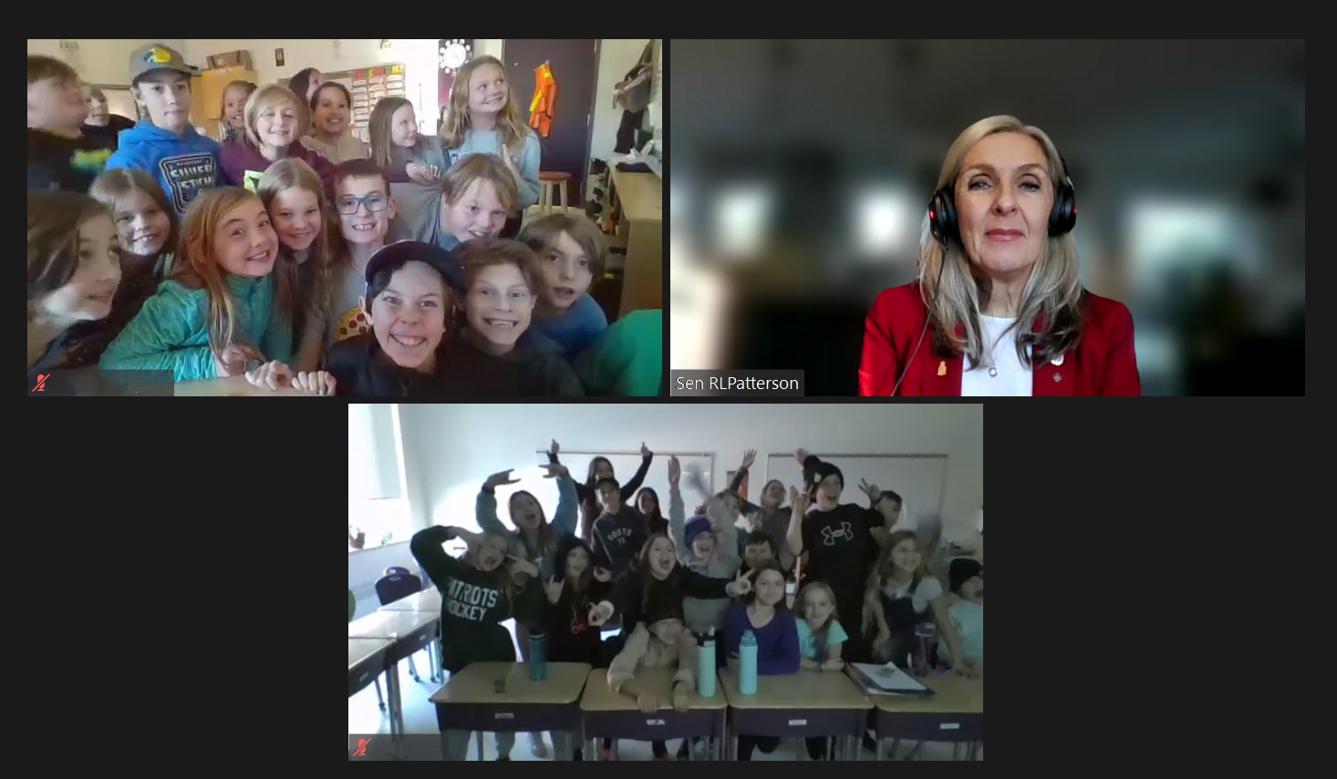 Monday, November 20, 2023 – Senator Rebecca Patterson; virtual event, organized by SENgage, with students from Valour JK-12 School, Petawawa, Ontario.