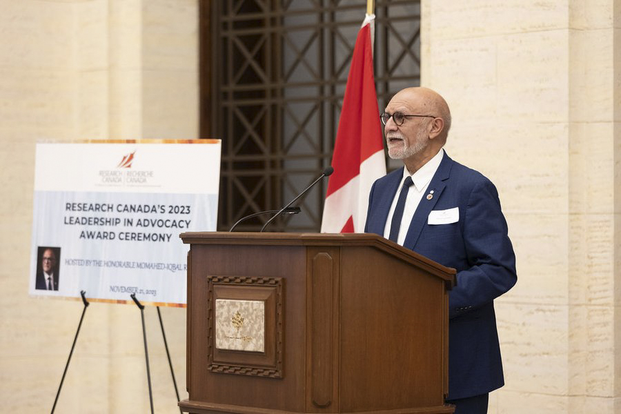 Tuesday, November 21, 2023 – Senator Mohamed-Iqbal Ravalia; Research Canada’s 2023 Leadership in Advocacy Award Ceremony, reception hosted by Senator Ravalia; Senate of Canada Building, Ottawa, Ontario. Photo credit: Sarah Bradley