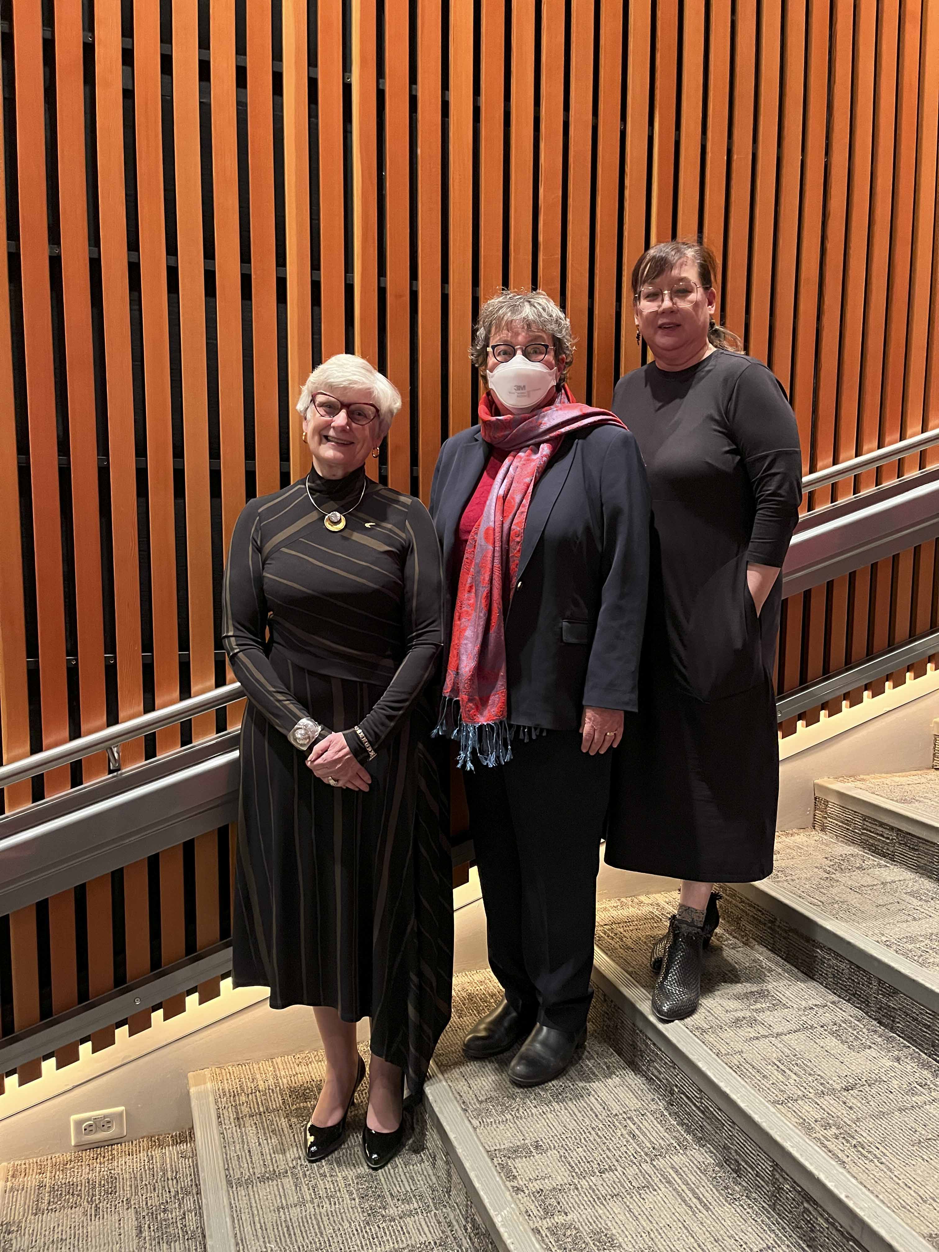 Tuesday, November 14, 2023 – From left to right, former senator Patricia Bovey, Senator Paula Simons, and Art Gallery of Alberta Executive Director Catherine Crowston; public lecture entitled “Alberta & the West Changing Canadian Art”, referencing former senator Bovey’s new book, followed by a question period moderated by Senator Simons; Art Gallery of Alberta, Edmonton, Alberta.